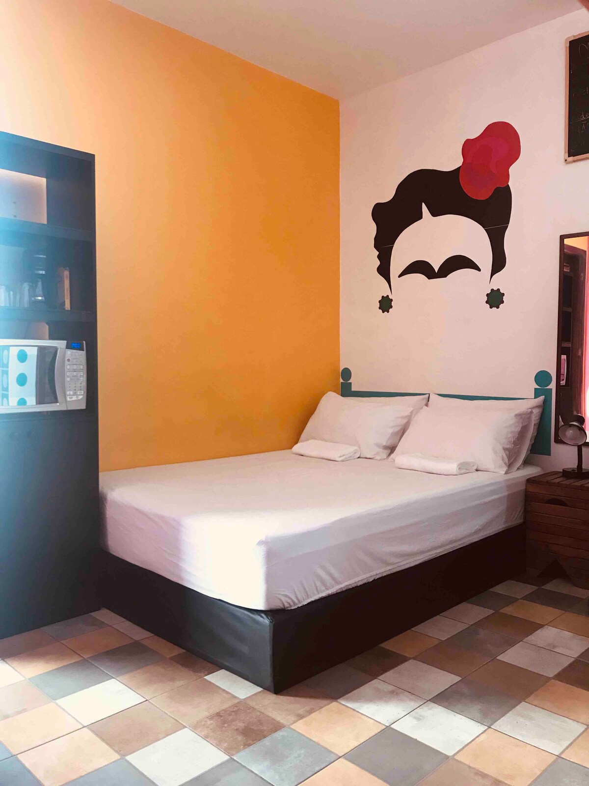 Espacio ideal para disfrutar en familia. El piso 203 está en el segundo piso con el balcón frente a la calle y tiene una suite doble con smart tv y ventilador de techo, habitación individual con smart tv y ventilador de techo, baño social y una pequeña despensa con microondas, cafetera, sandwichera, fregadero, heladera. No tiene estufa.