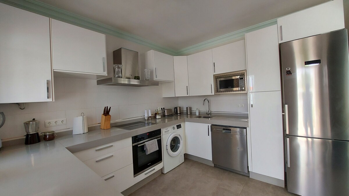 Apartamento moderno en el paseo marítimo de Puerto Real, con vistas al mar y excelente ubicación cerca de la playa y el centro. Dispone de tres habitaciones: una matrimonial con baño en suite y dos individuales que comparten un baño completo. La sala de estar es luminosa, con sofá y TV de pantalla plana, y la cocina está equipada con electrodomésticos modernos. El edificio cuenta con ascensores y rampas de acceso para personas con movilidad reducida. Ideal para vacaciones y estancias cortas