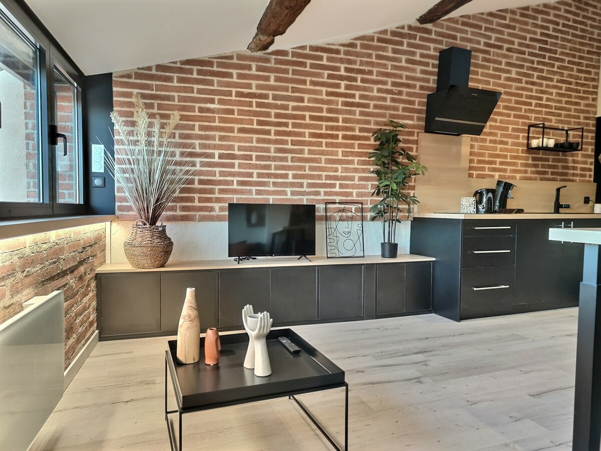 ¿Quieres visitar ALBI el tiempo de un fin de semana o más para descubrir nuestra hermosa región? ¿O vienes por trabajo? Nuestro NUEVO alojamiento de 38 m2 con todas las comodidades para 1 a 4 personas cumplirá con sus expectativas. Estacionamiento privado cerrado por puerta automática. Cerca de la escuela de minas de Albi y el estadio. El centro de la ciudad está a 5 minutos en automóvil. Cama de 160 cm + sofá cama de 140 cm Lavadora+ lavavajillas. TV 120cm, Conexión a Internet WiFi fibra Aire acondicionado/terraza exterior