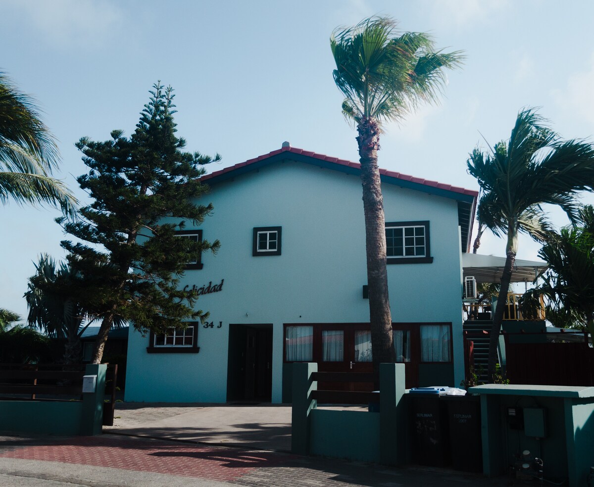Apartamento estudio privado con cocina americana. ¡El apartamento está totalmente equipado! A solo 5-10 minutos a pie del Ritz-Carlton y Palm Beach. La playa de Hadicurie (The Fisherman's Hut) también está a 5-10 minutos a pie. ¡Esta es la mejor ubicación para practicar kitesurf, windsurf e hidroala! Todas las playas de Aruba son públicas, ¡así que disfruta de las mejores playas del mundo a poca distancia a pie! Hay una piscina comunitaria disponible para los huéspedes, con sillas y sofá.