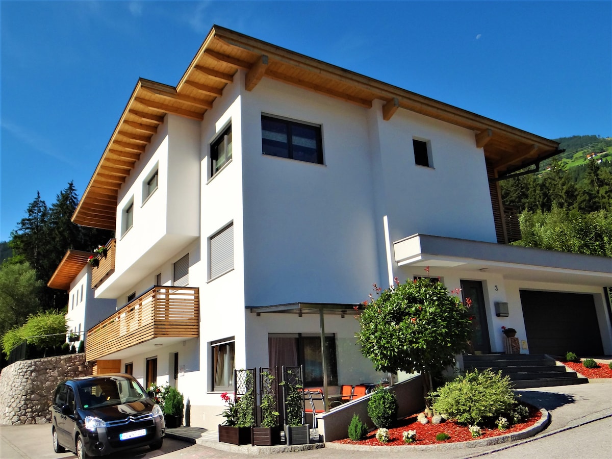 ¿Busca un apartamento pequeño, elegante y tranquilo en la montaña o en la cima de una montaña? El apartamento de vacaciones «Daniel Lechner» se encuentra en una tranquila zona de montaña en el lado soleado del valle de Zillertal. La casa de vacaciones se encuentra a unos 1050 m sobre el nivel del mar en Distelberg, por lo que tiene unas vistas impresionantes de los Alpes de Zillertal circundantes. Las estaciones de esquí Spieljoch, Hochzillertal-Hochfügen y Zillertal Arena están a pocos kilómetros de nuestra casa y se puede llegar en coche.