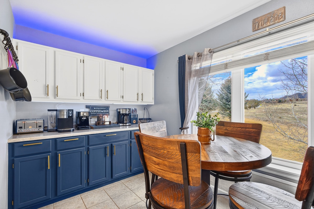 "Quédate un rato", un gran estudio a pocos minutos de Vail & Beaver Creek, ubicado junto a un arroyo balbuceante y un manantial natural. La entrada privada segura, la cocina, el baño completo, la sala de estar y el comedor, la chimenea de gas, la cama queen, el WIFI, la TV, el piso de madera, las noches estrelladas y los enormes árboles de pino proporcionan privacidad, lo que lo convierte en la escapada ideal a la montaña de Colorado. Para los huéspedes que necesiten espacio adicional, se puede hacer una reservación adicional en “Relájate” directamente en “Quédate un rato”. Esta habitación es una cama tamaño queen, baño y W/D.