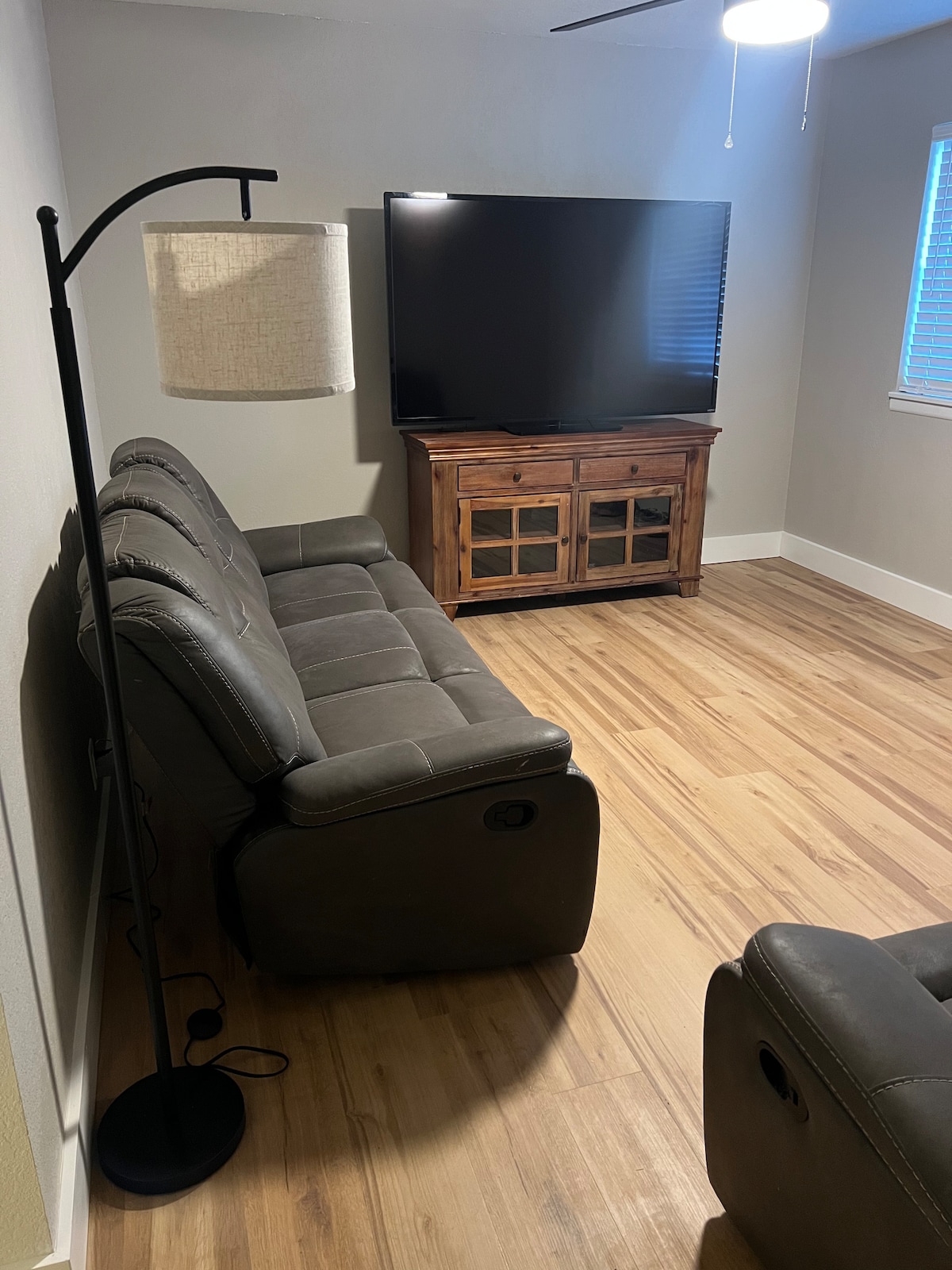 A straight shot down Hwy 83 to the Lancium AI plant, this 3-bed, 2-bath home is perfect for long-term stays. With 4 separate beds - 1 queen & 3 twin - everyone can get their own sleeping space without having to share. It has everything you need to feel at home, including a fully equipped kitchen, in-unit laundry, and a spacious living area w/ 5 plush recliners—perfect for relaxing after a long day’s work and ideal for an extended visit, this home is designed with comfort in mind.