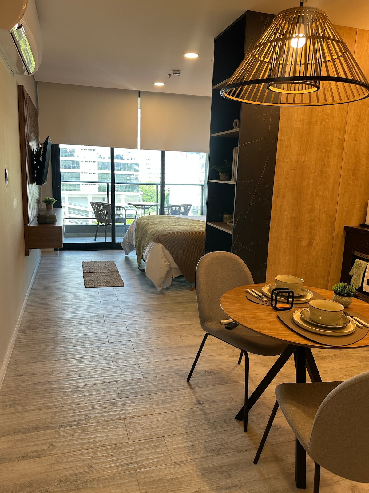 ¡A solo unos pasos del Shopping del Sol! Cerca del paseo de La Galería, World Trade Center, eje corporativo. En Home Palace Tower - edificio a estrenar. Disfruta de una sala luminosa y un dormitorio con una amplia cama king size, además de la mejor vista de la ciudad desde el balcón: captura atardeceres paraguayos preciosos y las luces del barrio por la noche. Perfecto para negocios o placer: moderno, impecable, Wi-Fi rápido, A/A y una cálida bienvenida.