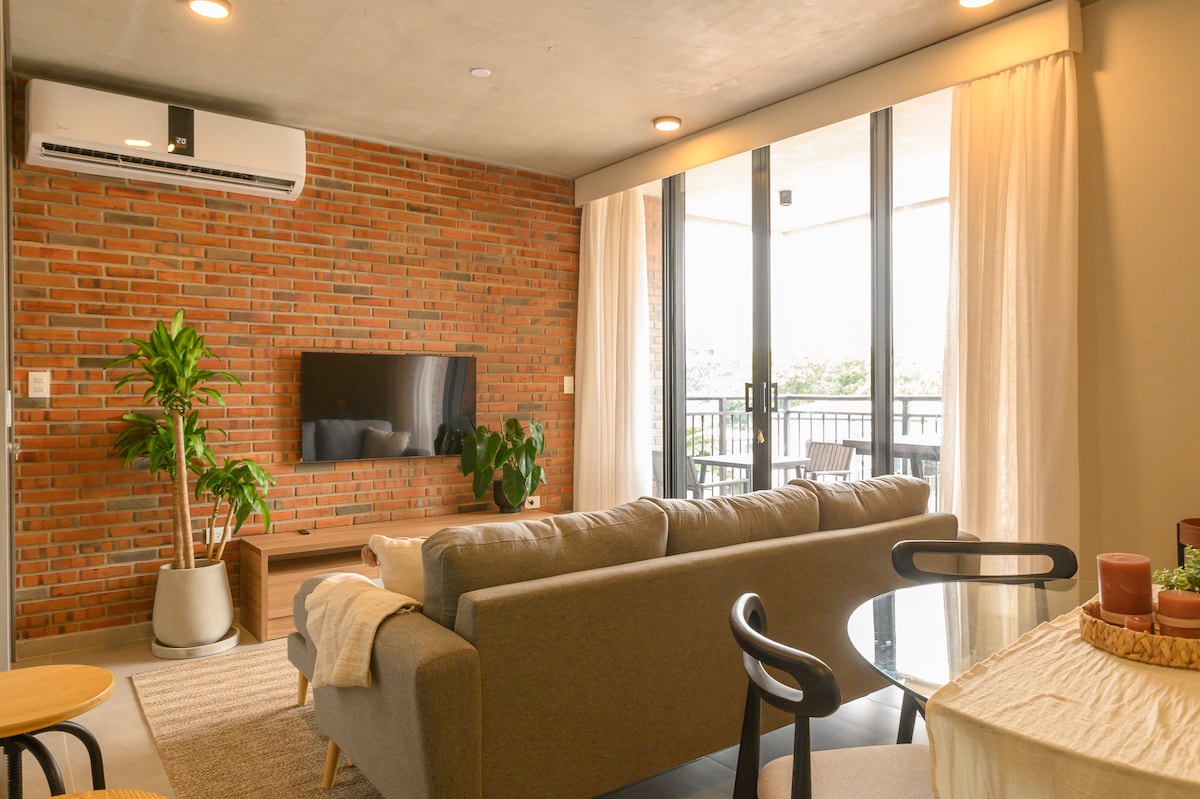 Relajate en este espacio tan tranquilo y elegante. Edificio de arquitectura industrial cerca al eje corporativo de Asunción. Espacio amplio y luminoso, con balcón. Equipado con vajillas y electrodomesticos. Ideal para quienes buscan desconectarse, sin alejarse de la ciudad, en un entorno moderno y comodo.