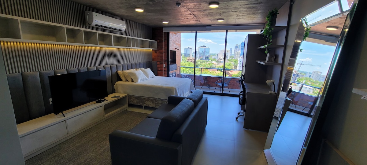 Ideal para caminar a Paseo la Galería, Shopping del Sol, World Trade Center, Park Plaza y recorrer todo el centro corporativo y de entretenimiento de Asunción. Amenities: piscina con borde infinito y vistas panorámicas a la ciudad, parrilleros, SUM, Sauna y gym. El departamento cuenta con el mejor servicio de WiFi, cable, Netflix y todo lo que necesitas para disfrutar de tu estadía al máximo! Estacionamiento incluido en el precio.