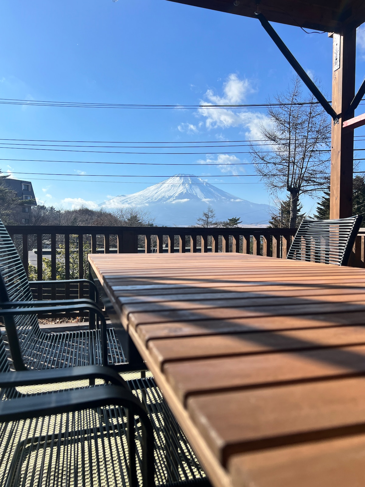 Este alojamiento está limitado a un grupo por día llamado "Private Resort Fuji" en una zona de villas a 11 minutos a pie del lago Yamanaka, renovada por un diseñador en julio de 2024. Es una casa de diseño moderno japonesa basada en un área total de 115 cabañas 3LDK. Cuando subes al segundo piso, puedes ver el gran monte Fuji desde la ventana de la sala de estar, barbacoa en el gran balcón en la parte trasera del monte Fuji, y después de disfrutar de la sauna de barril rodeada de árboles, puedes darte un baño en el bosque en el espacio de descanso exterior.El patio tiene una gran fogata donde incluso puedes hablar alrededor del fuego.Además, hay una valla alta en el jardín, así que si traes a tu perro, no tendrás que preocuparte por huir. La habitación tiene una gran pantalla de 90 pulgadas, donde puedes disfrutar de Prime Video, Youtube y más.Por la noche, también se puede ver el cielo estrellado si las condiciones son las adecuadas.