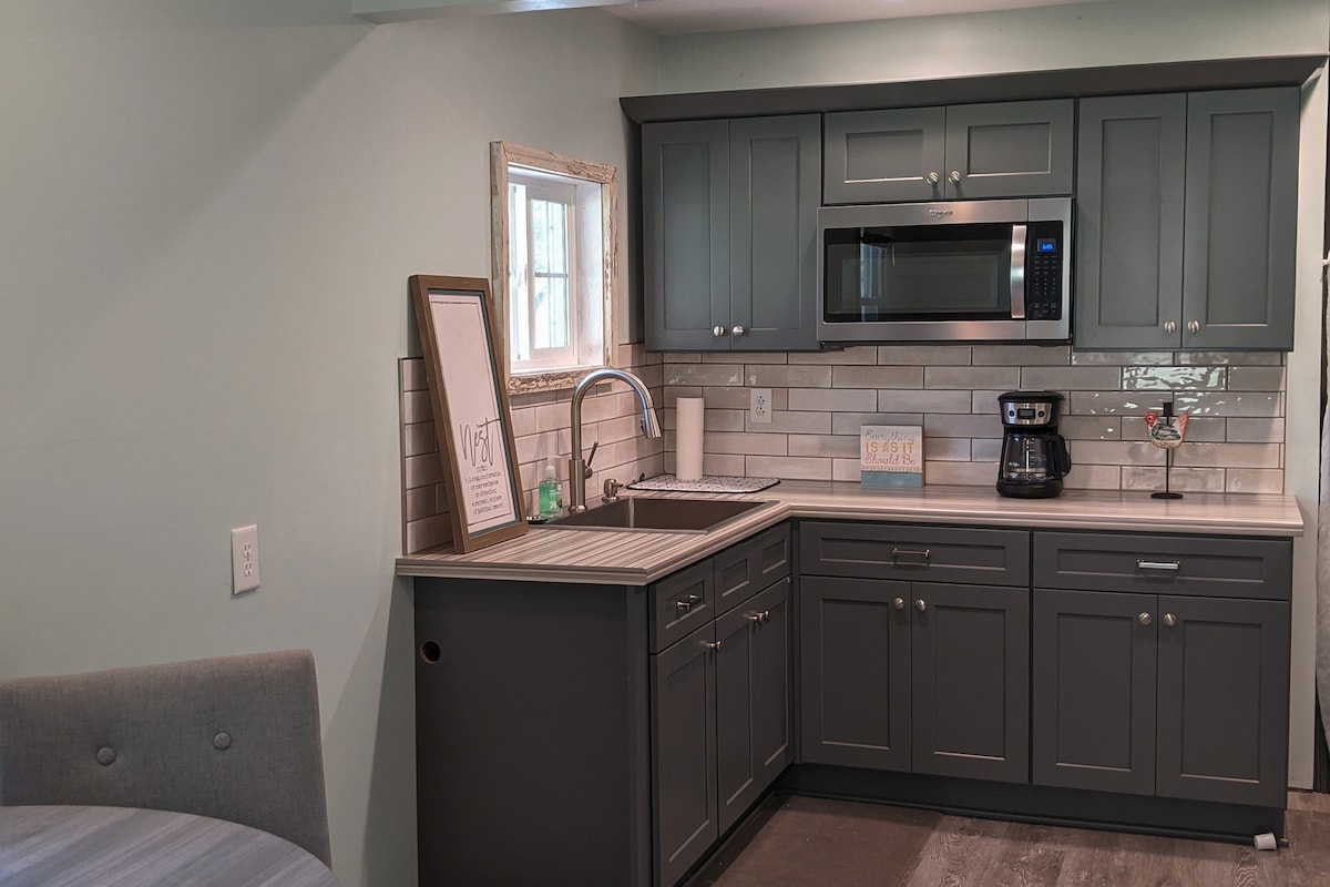 «Casa pequeña» de 400 pies cuadrados al borde del bosque en una propiedad privada con vecinos a la vista. Entorno rural. Exterior: ¡espacio verde y árboles! En el interior: acogedora, linda, moderna y con una paleta de colores agradable. Aparcamiento espacioso y bien iluminado en la entrada junto a la acera que conduce a tu patio. ¿Vienes para un fin de semana largo, una boda o por trabajo? ¡Perfecto! A 25-30 minutos de Atchison, Weston y el aeropuerto de Kansas City. A menos de 5 minutos de St. Joe, gasolina y comida. Sigue leyendo para obtener más información sobre el entorno y los servicios.
