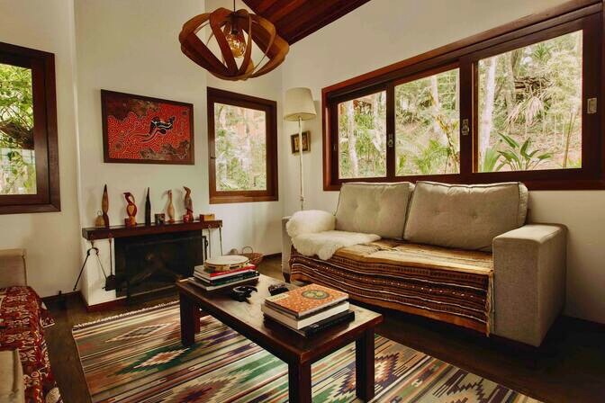 Acogedora y espaciosa casa con piedras y maderas en un proyecto arquitectónico que se integra con la naturaleza del bosque nativo con una vista deslumbrante del río do peixe. La casa ofrece una experiencia de alto nivel en privacidad y tranquilidad, revestida con madera peroba reciclada, la casa invita a relajarse. Prepárate para descansar en medio de la sierra de la Mantiqueira y despertar en un escenario mágico del río Peixe con toda su maravillosa naturaleza. ¡Ofrecemos desayuno opcionalmente!