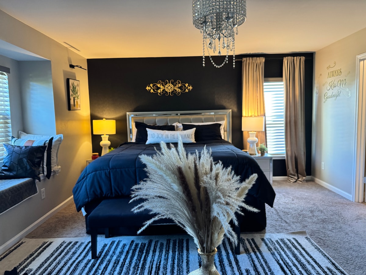 La moderna casa del lago oasis urbano tiene todo lo que deseas. Muebles nuevos, cocina totalmente equipada, elegante sala de estar con chimenea eléctrica y televisores inteligentes en cada dormitorio, armario de lavandería, wifi de alta velocidad y un sofá cama en la sala de estar para huéspedes adicionales. Disfruta de un trabajo independiente desde la oficina/estudio en casa con un sofá cama. Experimenta comodidad y estilo en este retiro junto al lago. Las características de seguridad incluyen un timbre, un candado inteligente y luces de inundación.