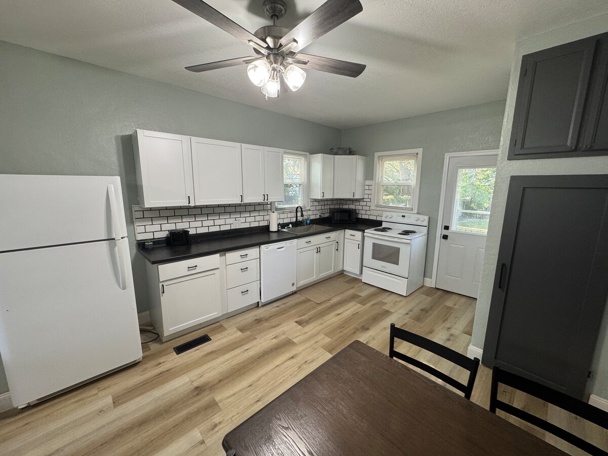 Disfruta de nuestra casa totalmente cargada para reuniones navideñas, trabajando en la carretera o simplemente viajando por la ciudad. Incluye una cocina totalmente equipada, televisores con streaming y lavadora/secadora. Esta es una casa de cuatro dormitorios. Tres de las habitaciones tienen una cama tamaño queen y la cuarta habitación tiene una cama doble. Todas las habitaciones tienen televisión. La sala de estar tiene un sofá escondido para lugares adicionales para dormir. Garantizamos edredón y todos están frescos cuando llegues. Los baños y la cocina también están completamente desinfectados. ❤️