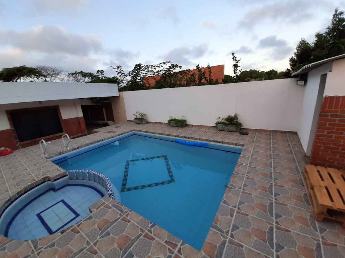 Hermosa casa cerca a la playa con jacuzzi, muy tranquila , amplia y familiar , bbq , tres habitaciones con aire , wifi y tv , cocina equipada , kiosko con comedor al aire libre , parqueadero privado , muy cómoda , 2,5 baños , habitación principal con baño privado , ducha exterior para el regreso de la playa , sala de estar con tv para ver películas y compartir en familia