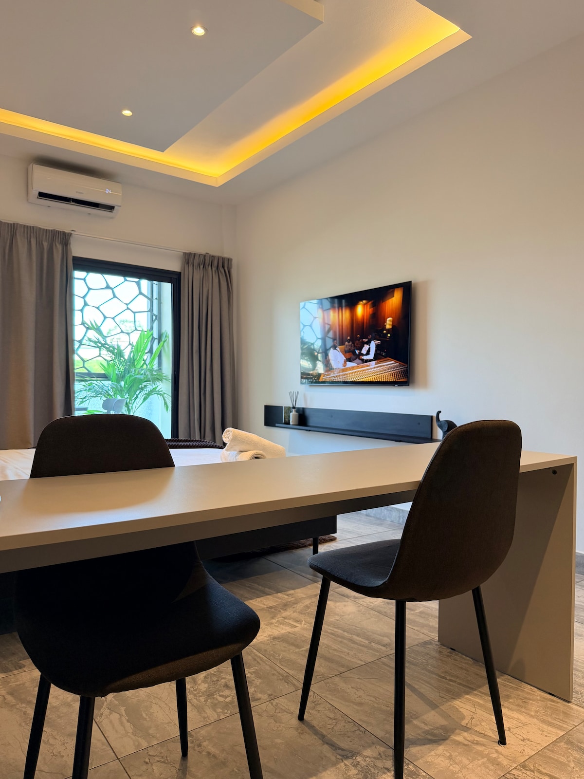 Séjournez en plein cœur d'Abidjan dans ce sublime appartement neuf, paisible, chaleureux, décoré avec goût dans des tons naturels et une ambiance moderne propice à la détente. Cet appartement spacieux et entièrement privatisé est situé au 2ème étage d’une résidence calme et sécurisée, parfait pour un séjour professionnel ou des vacances reposantes. Le logement est situé à 25 minutes du Plateau, 35 minutes de l’aéroport et à 10 minutes d’Abidjan Mall. A proximité de nombreuses commodités.