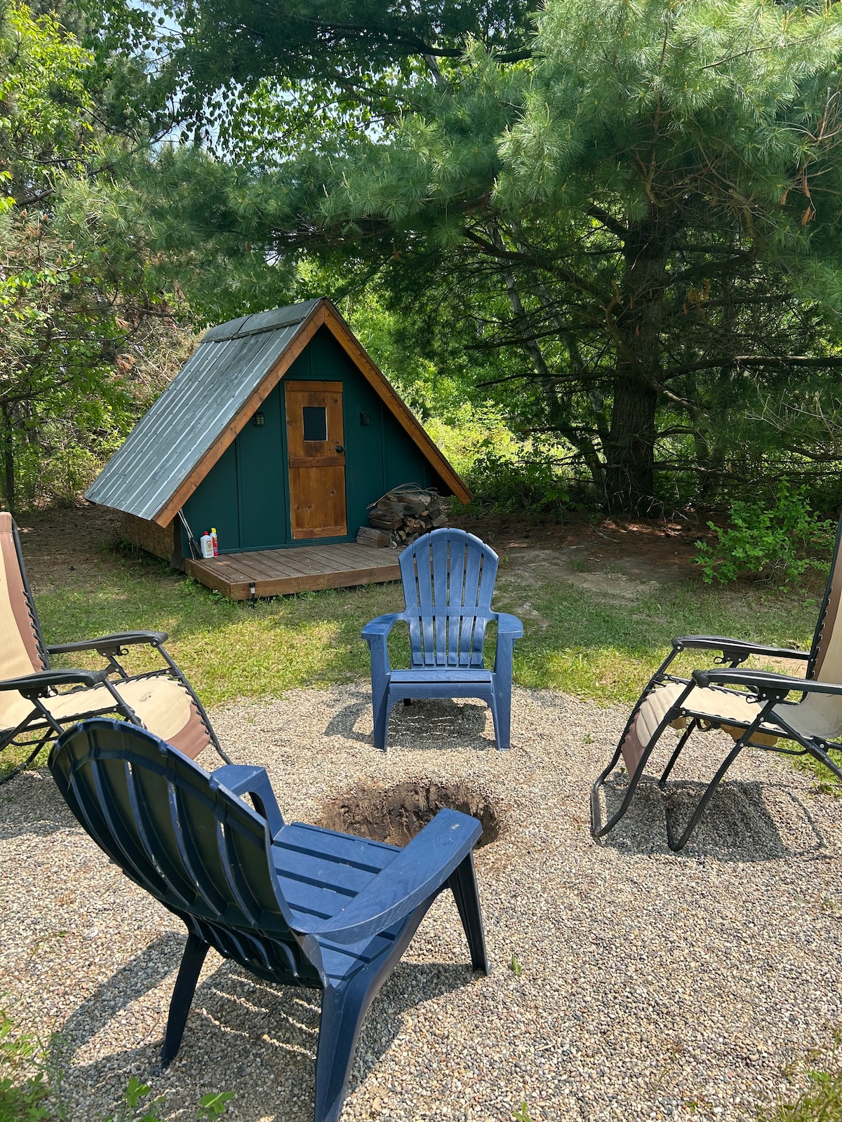 Aléjate de todo cuando te quedes bajo las estrellas con un toque de la granja. Cabaña privada de glamping fuera de la red con paisajes tranquilos para disfrutar de la naturaleza en tu propia cabaña aislada en forma de A. Hay una letrina a pocos pasos de la cabaña. Granja de pasatiempos junto a la casa principal con animales de granja amistosos a los que les encanta recibir mascotas. Con una parrilla de piedra negra y una cama tamaño queen, puedes hacer la cocina de tus sueños y tener algunos sueños bajo las estrellas.
