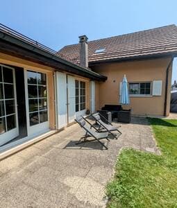 Bienvenido a Perroy, una hermosa ciudad entre Lausana y Ginebra. Ofrecemos un bonito y totalmente equipado apartamento en el último piso de nuestra casa. Para llegar al apartamento se accede a una entrada compartida. El apartamento es espacioso y tiene un balcón con una hermosa vista al lago y a los viñedos. Willkommen en Perroy, einer Seegemeinde zwischen Lausanne und Genf. Wir bieten eine voll ausgestattete Wohnung im oberen Stock unseres Hauses. Der Weg führt über einen gemeinsamen Eingang in den 1. Stock.