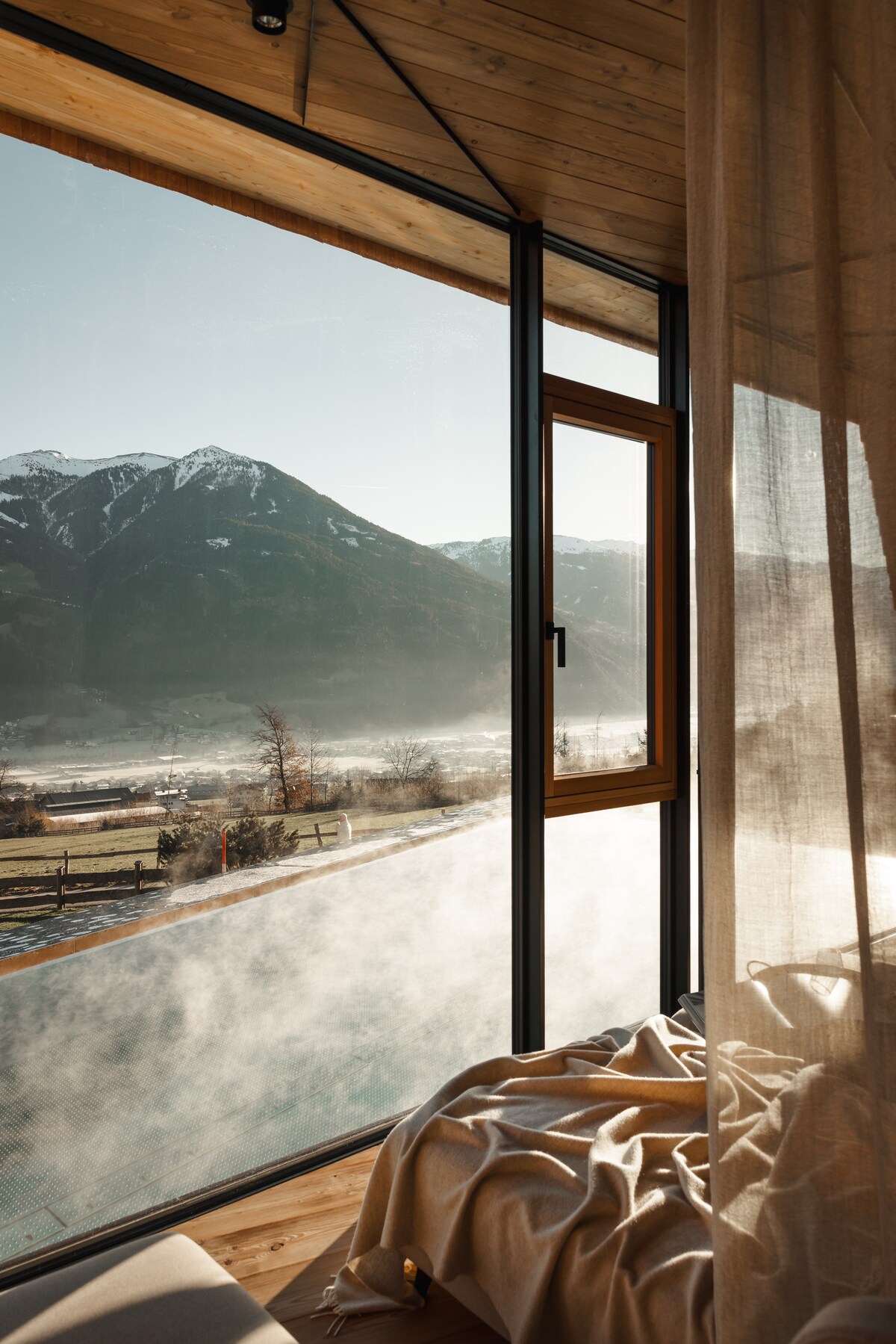 En la categoría Junior Suite con vistas a la montaña, le espera un apartamento de más de 30 m² para un máximo de tres personas con cama doble king size y un sofá cama individual de alta calidad. El apartamento dispone de una cocina totalmente equipada con una acogedora sala de estar, un lujoso baño con una ducha extragrande y una secadora, así como una terraza de 10 m² con suficientes asientos para disfrutar de un delicioso desayuno al aire libre con unas vistas maravillosas de las montañas tirolesas.
