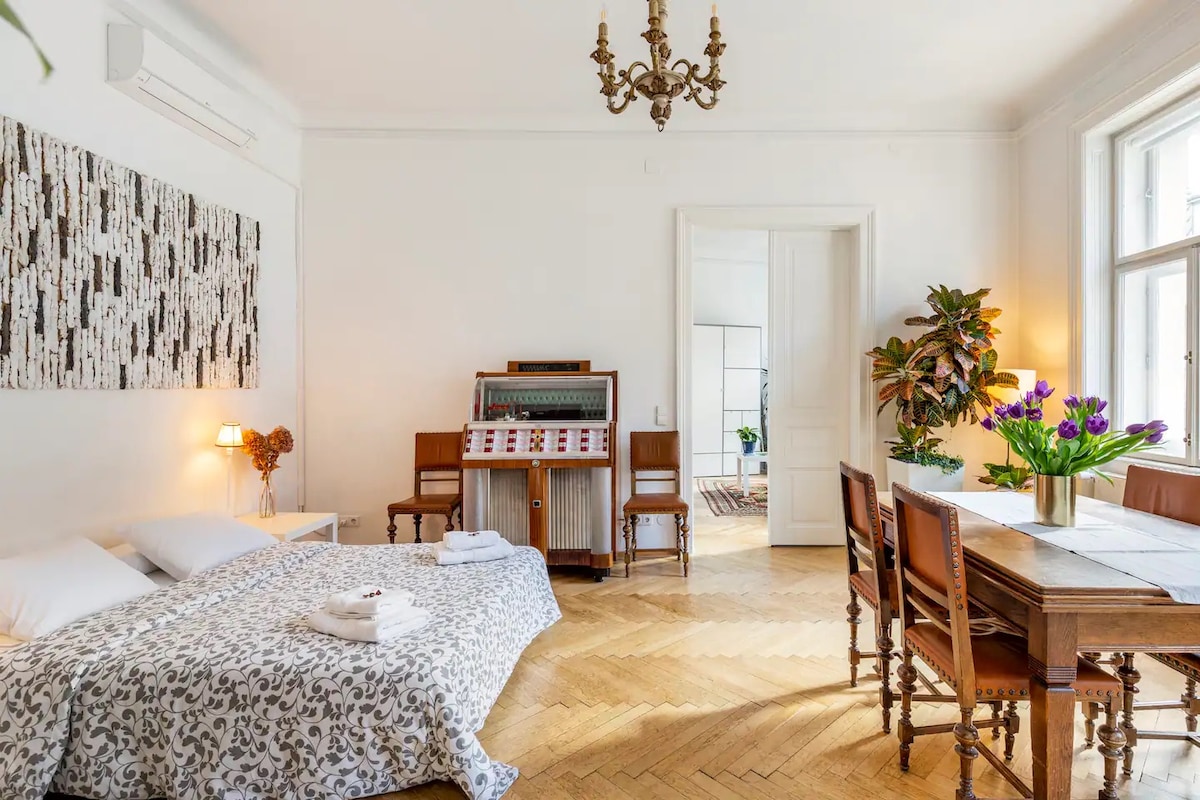 Situado en el distrito Biedermeier de Viena, Spittelberg, con sus románticas callejuelas con bistrós rústicos de cerveza y bares de moda, restaurantes elegantes y lugares de reunión de estudiantes, este moderno apartamento es el punto de partida ideal para explorar la ciudad. Tanto el centro histórico de la ciudad como Mariahilferstrasse, la calle comercial más larga de la ciudad, se pueden llegar fácilmente a pie. La estación de metro a la vuelta de la esquina te conectará con toda la ciudad y sus alrededores. ¡Disfruta de la mejor ubicación de Viena según nosotros!
