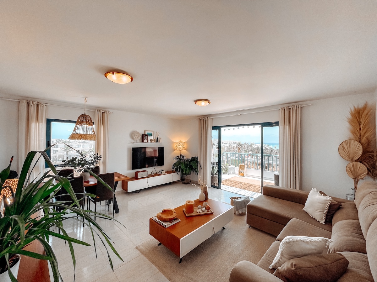 Apartamento de lujo junto a la playa, en el animado corazón de Costa Teguise. El interior minimalista, con piezas de arte y vegetación, invita a la paz y al descanso. En su terraza disfrutarás del cielo y el mar. Está equipado al detalle: cocina de diseño, iluminación indirecta, ducha multifunción, rincón de lectura, comedor interior y exterior... Fue ideado por la propietaria, escritora, como su rincón de calma, por lo que es más que un apartamento vacacional. Lo sentirás como un hogar.