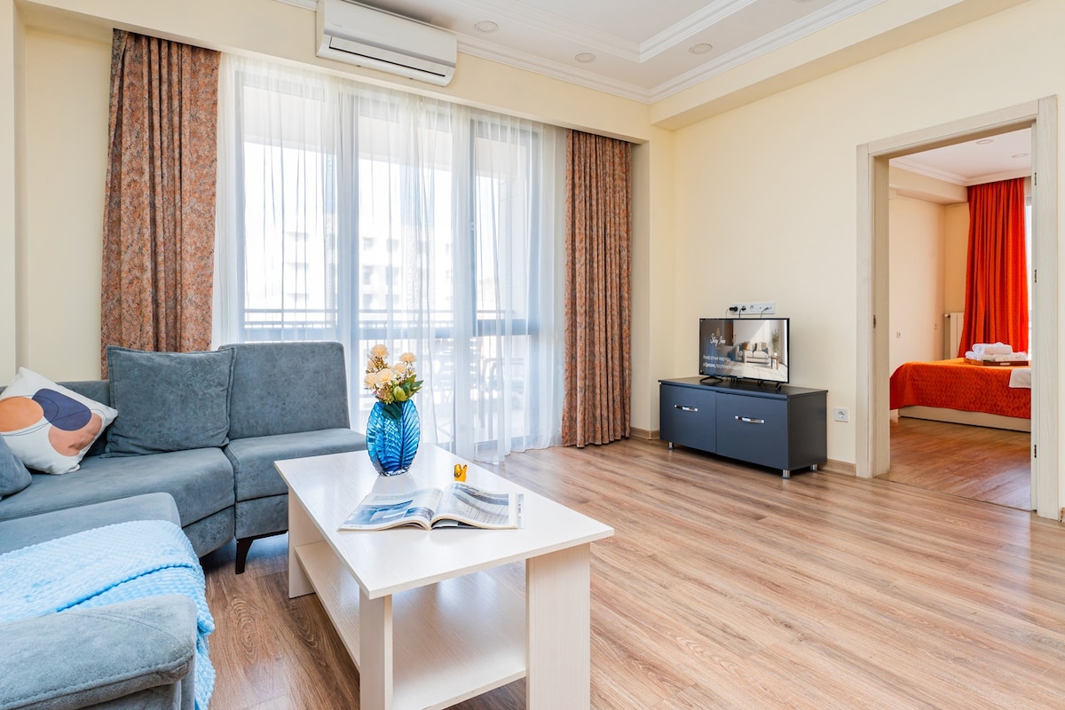 ☆ Welcome to “Bluva” by Hotelise – 15th-floor views, sky-high vibes, and unforgettable coffee moments. ✓ 24/7 self-check-in. ☆ Balcony ✓ 15th floor Elite Build ✓ Lifts ✓ Spacious 62 m2 ✓ One A/C ✓ Smart TV + Channels ✓ Fast WIFI ✓ Sofabed / Bed 145x200 ✓ Premium amenities ✓ Fully equipped kitchen + Dishwasher ✓ Washer ✓ Fresh linens + towels ✓ Starter luxury toiletries ♥ At hotelise we are creating memories one stay at a time!