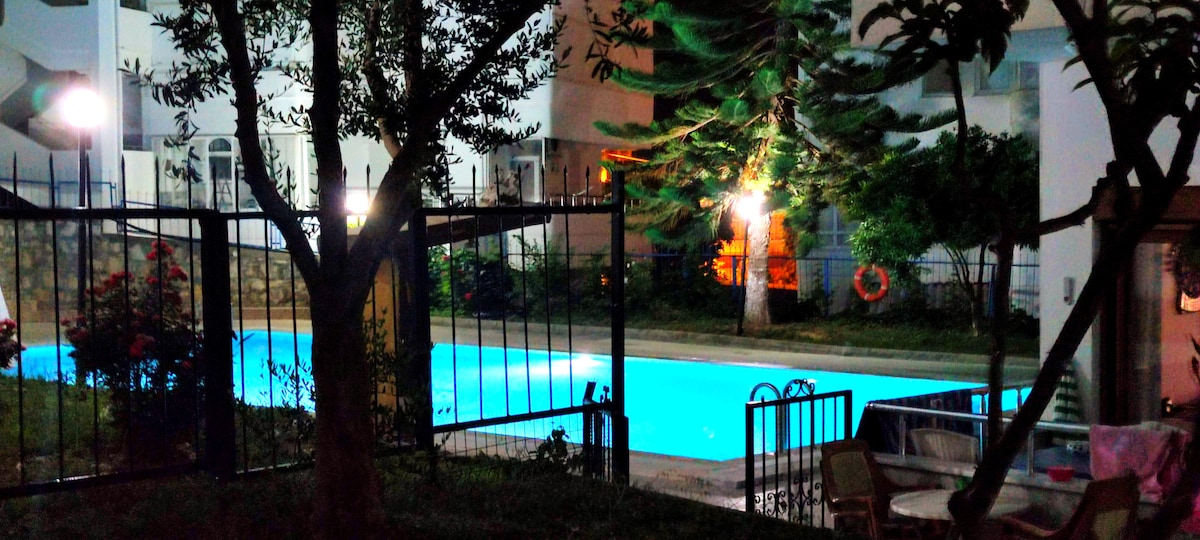 Aquí vives en un 1+1 fantásticamente agradable con tu propia terraza privada y jacuzzi compartido,piscina y sauna. ¡Cerca de la playa de Cleopatra, tiendas y restaurantes! Servicio personal El departamento cuenta con todo el equipo que puedas imaginar. Estacionamiento en la calle exterior Tenemos varios departamentos en renta. Es bueno saberlo si vienes con una familia numerosa :) La piscina está cerrada para la temporada 2025