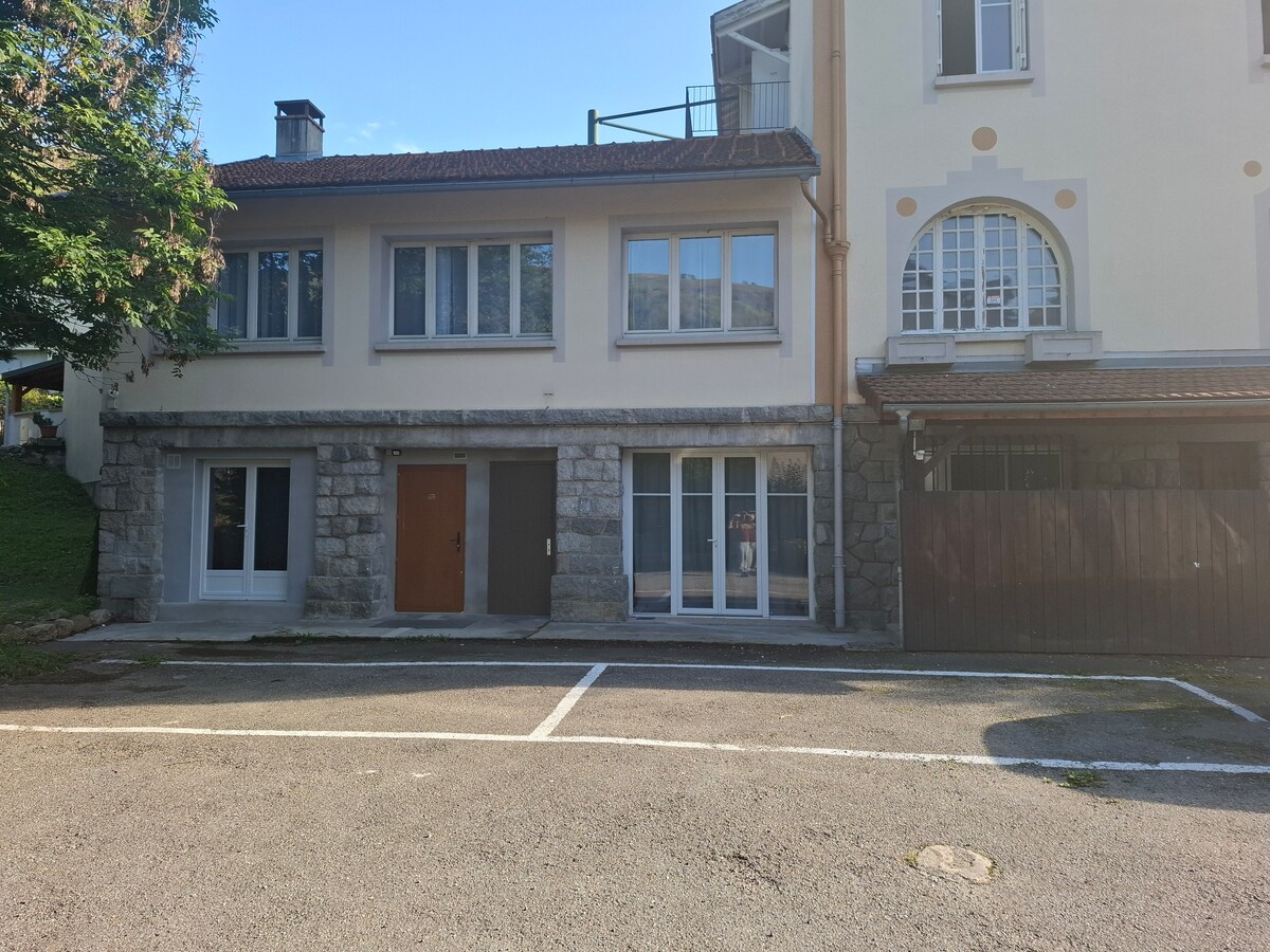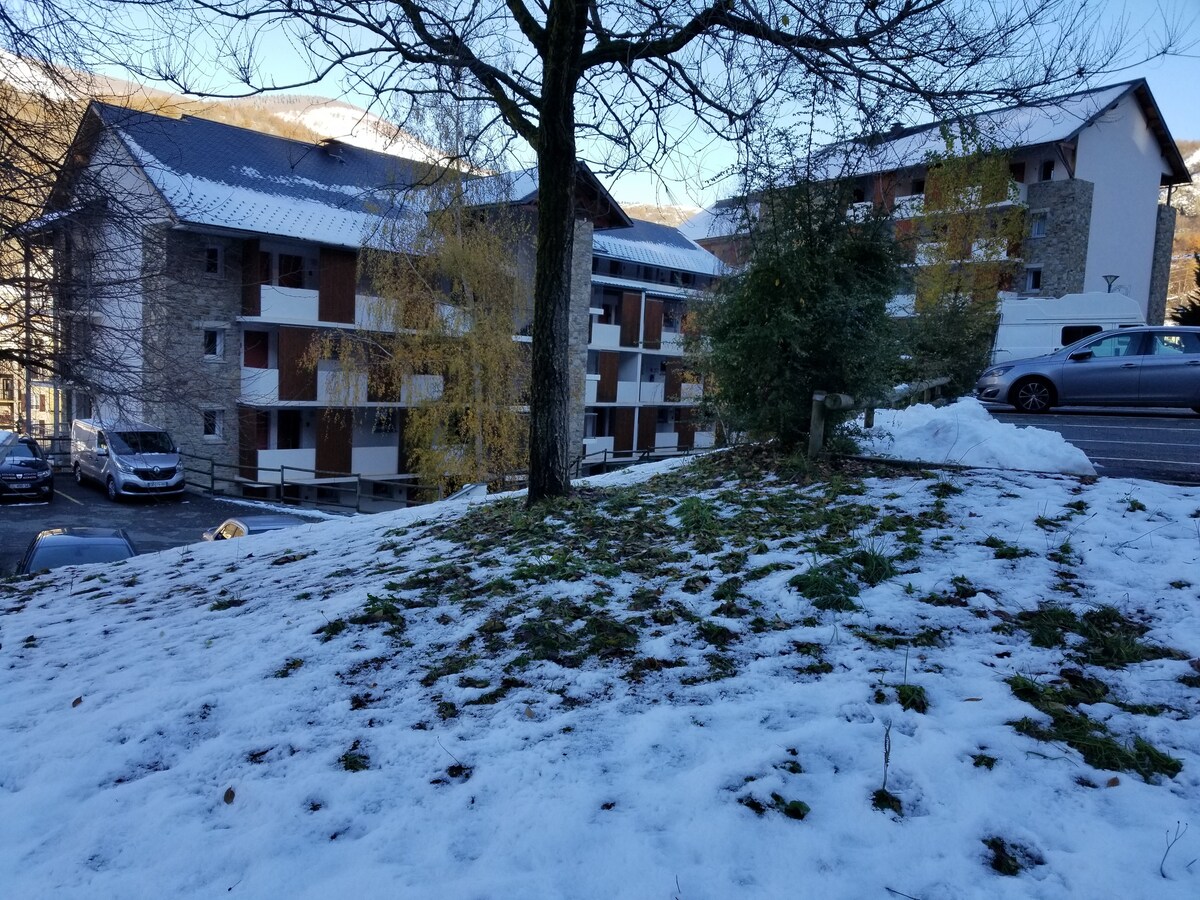 Estudio situado en la 1ª planta en una pequeña residencia en una calle tranquila a 200 m de los telecabinas y de los baños termales, está totalmente reformado . Está equipado con una cama fija de 140, nevera-congelador, horno, microondas, cafetera, hervidor de agua, tostadora y toda la vajilla necesaria. Todos el equipamiento es nuevo. Simplemente traiga sus sábanas y toallas y se instala, para cocinar, dormir y ver la televisión en los sillones disponibles también. Clasificado 2*