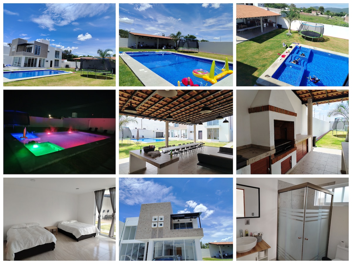 Agradable casa de descaso perfecta para familias chicas o medianas , con alberca privada y climatizada(mediante paneles solares), a 15 minutos de Cocoyoc y Oaxtepec. Estamos a unos minutos del parque acuático Hurriacan Harbor de six flags, a 25 minutos de Yecapixtla y a media hora de Tepoztlán. Disfruta de las 2 albercas que tenemos, una dentro de la privada y la otra en el patio trasero de la casa, climatizada(paneles) y solo para ti y tu familia. Prepara una carnita asada en el Roof Garden.