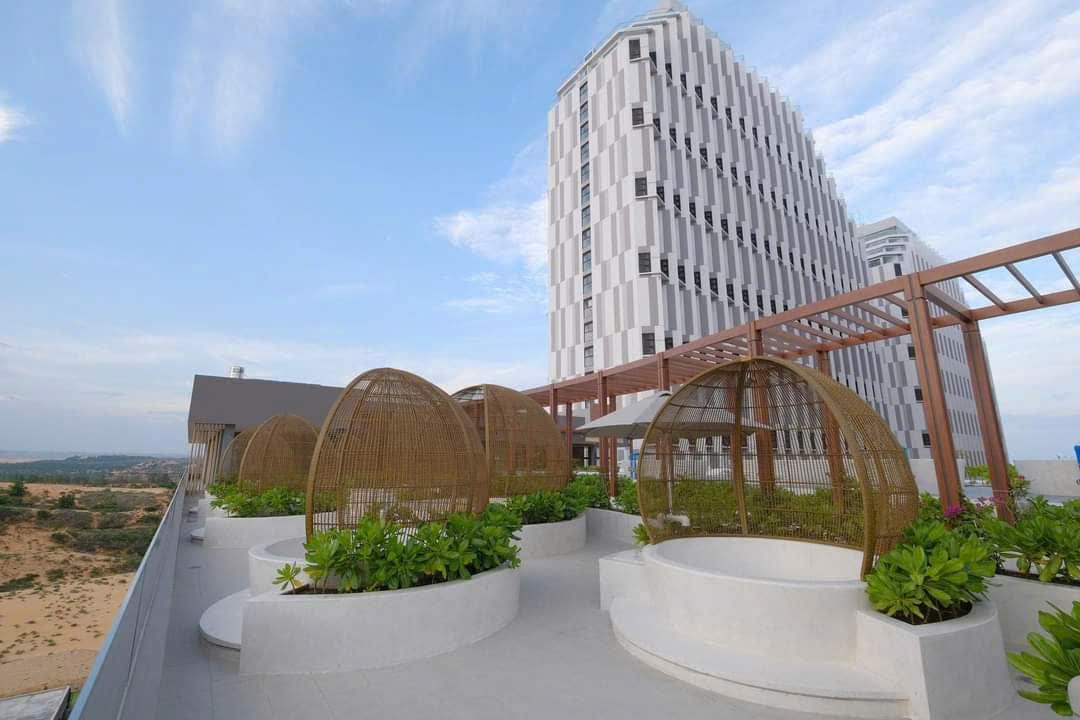 Nơi ở độc đáo này khách được Ngắm bình minh tại phòng. Các quán ẩm thực và đồ uống trong khung cảnh tuyệt vời của biển và hồ bơi vô cực đẹp nhất Phan Thiết. Với xe điện đón tại sảnh bạn sẽ dễ dàng di chuyển xuống bãi biển, hoặc đi thang cuốn điện. Dịch vụ khách sạn chỉ mua khi dùng: gym 55k/phòng, hồ bơi 130k/phòng, sauna&gym&hồ bơi 150k/phòng. Laundry : 40.000vnd/kg từ 2 kg/ lần => change towels, more roll paper, mineral water, coffee, tea : 10.000 vnd/unit —- Bãi biển miễn phí thoải mái tắm