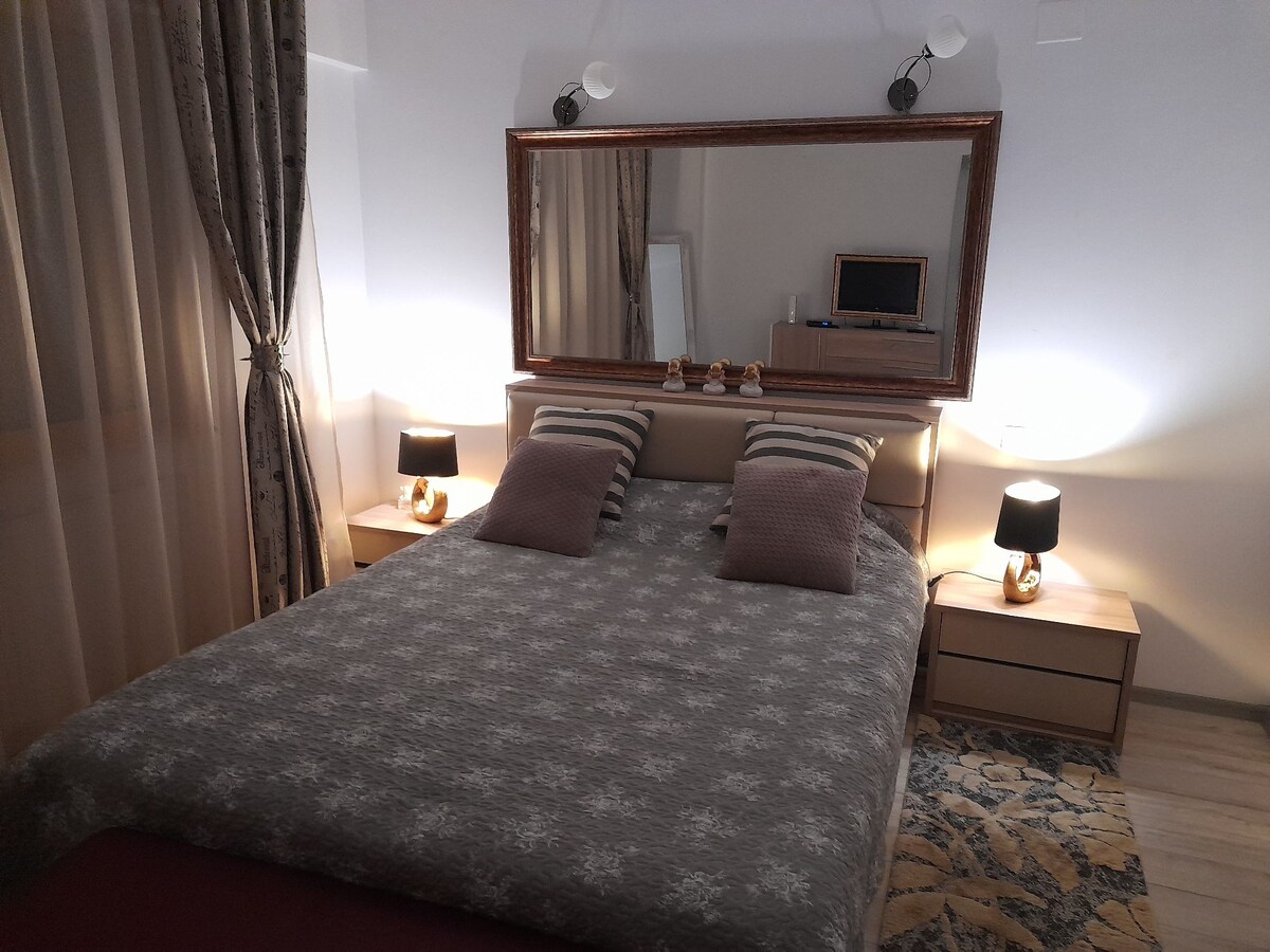 Nuestro apartamento más nuevo totalmente equipado con muebles hechos a medida está esperando para alojar tus relajantes vacaciones. Situado en el último piso de un edificio nuevo, muy cerca del centro de la ciudad de Bacau. Nuestro apartamento te ofrece todo lo que necesitas durante una estancia larga o corta. El apartamento está totalmente equipado con una cocina que cuenta con todos los electrodomésticos de alta gama: horno, fogones, microondas, cafetera, tetera, TV de pantalla plana con Netflix, lavadora y aire acondicionado.