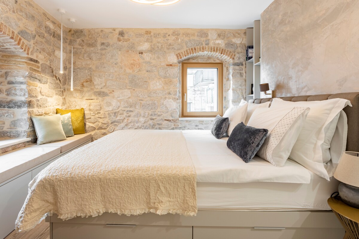 En el corazón de Varoś, la parte más antigua de Split, y a 300 metros de Riva y del Palacio de Diocleciano, esta pequeña casa tradicional completamente renovada ha conservado el alma croata. Esta es una de las pocas que aún tiene un techo de piedra. Dormirás totalmente en paz, protegido por sus viejas paredes de piedra. La propietaria, Marcelle, escultora y psicoenergizadora, ha podido decorar con materiales nobles y obras de arte, y ha respirado aquí las mejores energías positivas.