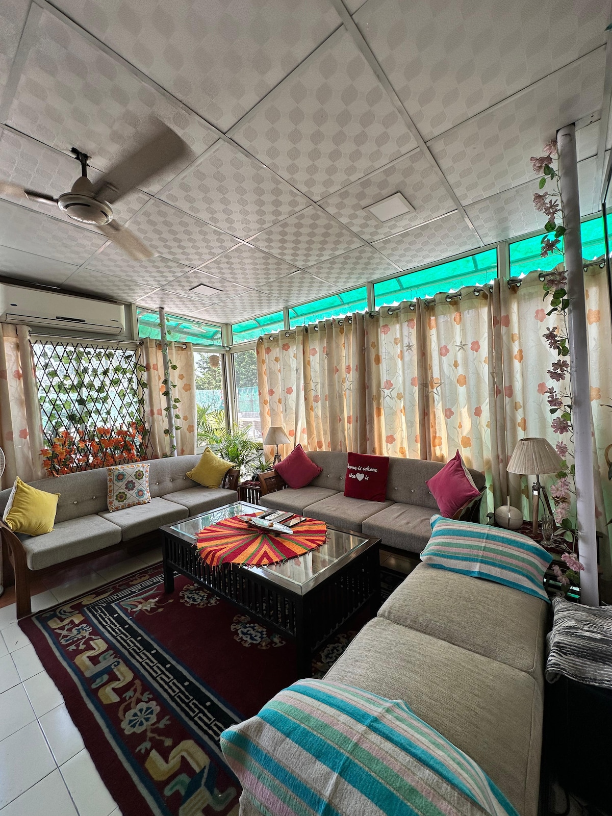 Boho-luxury 1BHK con un ambiente cálido y acogedor con un balcón privado con columpio acolchado y luces de hadas. ✨ Disfruta de un televisor inteligente de 55” con barra de sonido y subwoofer para una experiencia similar a la del cine. La estancia ofrece aire acondicionado, purificador de aire, inducción, nevera, RO, utensilios de cocina y té/café. 🙌🏻 Cerca del metro Shalimar Bagh, a solo 100 m de KFC, Domino's y McDonald's, y cerca de PVR y Pacific Mall. 📍 Ideal para citas o cumpleaños, con decoración disponible a pedido.❤️