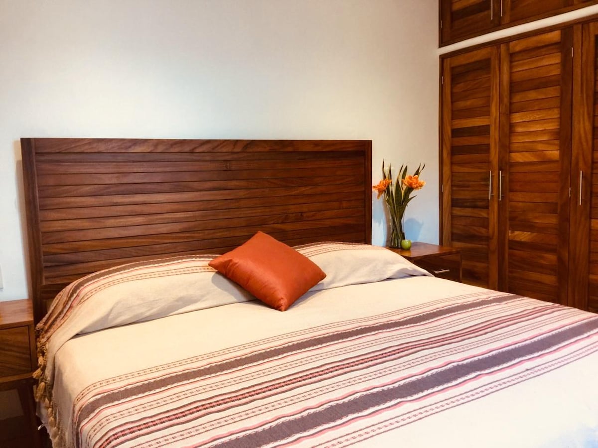 Modern Condo in the Heart of Santa Cruz – Walk to the Beach! Welcome to our second-floor condo, perfectly located in the vibrant center of Santa Cruz. Just a 5-minute stroll to the beach, restaurants, and local attractions, this stylish retreat offers the ideal blend of comfort and convenience. Included in your stay: Daily electricity credit of $100 MXN Complimentary high-speed Wi-Fi There is construction in the area. During holidays there are often celebrations, music and activities nearby
