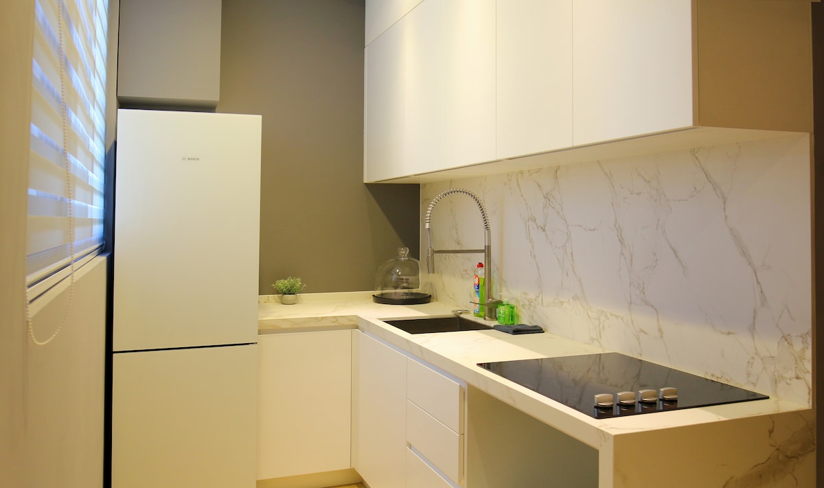 4 personas pueden alojarse en Easyhouse, tres habitaciones, un salón, dos baños, cocina adjunta, edificio de apartamentos de lujo