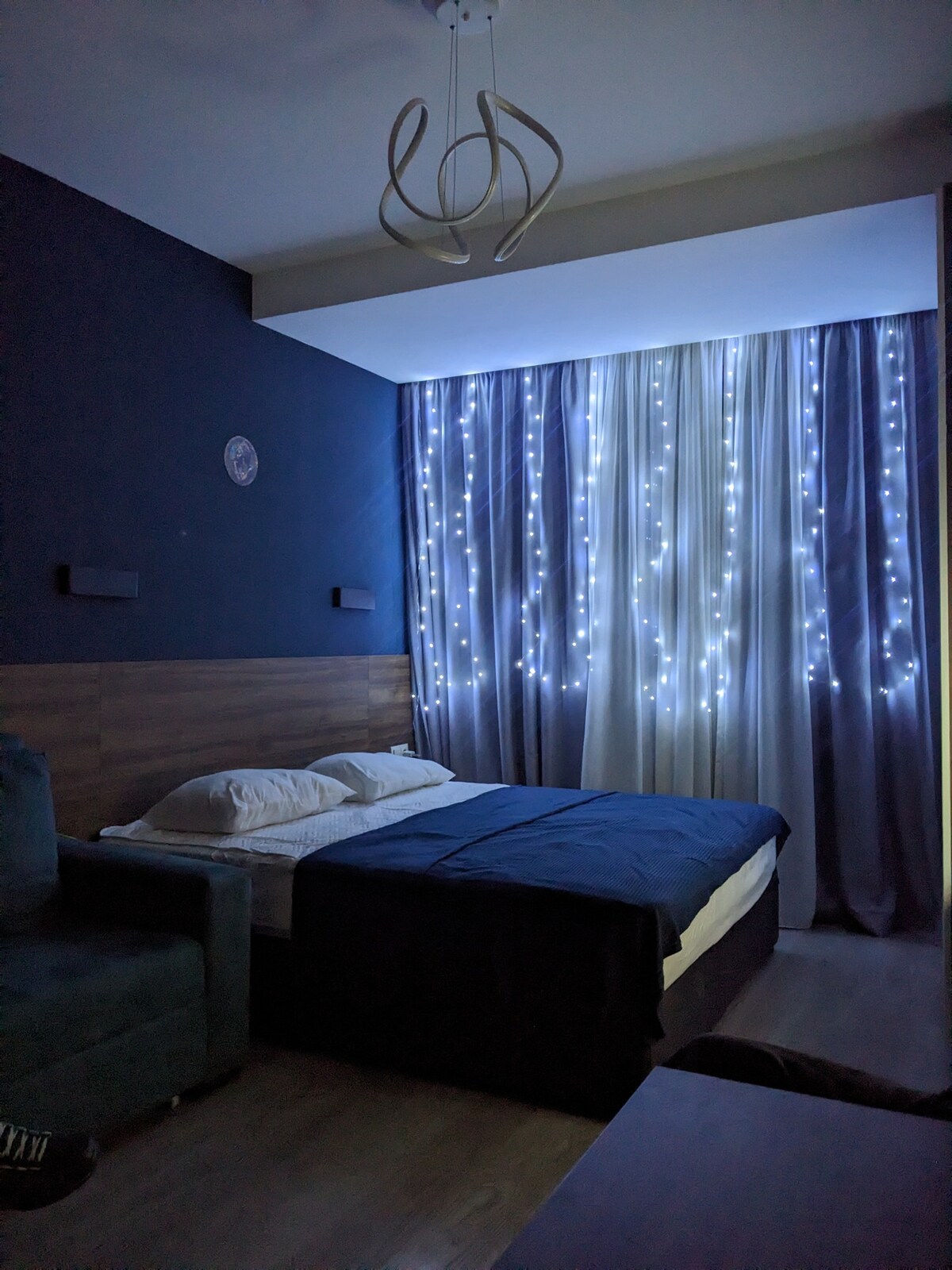 Este moderno estudio céntrico es ideal para 3 huéspedes, preferiblemente 2 adultos y un niño. El estudio está equipado con todos los servicios necesarios para tu comodidad y conveniencia. Está ubicado en el territorio hotelero que ofrece seguridad adicional. Estacionamiento incluido. El estudio incluye tabique, wifi gratuito, balcón amueblado y mucho más. Consulta la lista completa en los detalles de la propiedad. Las áreas circundantes incluyen bosque, parque infantil al aire libre y carriles para bicicletas. Este estudio también está cerca de Koxta Gora.
