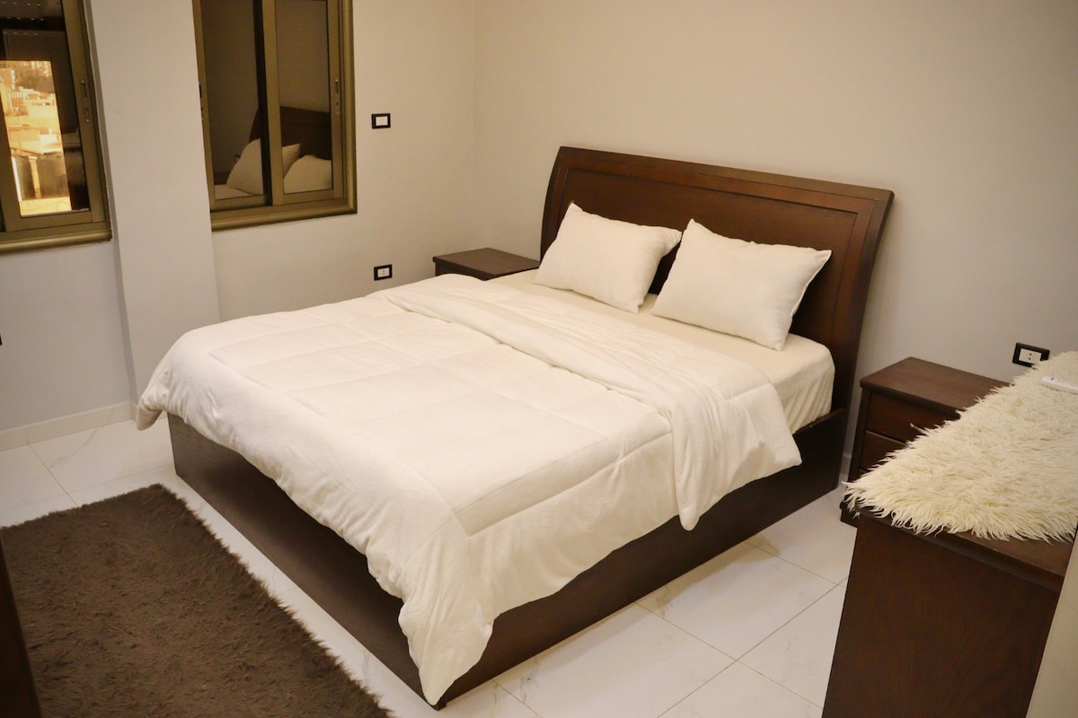 Stay in a brand-new building and enjoy this bright, modern 1-bedroom flat steps from the University of Jordan. The apartment features a cozy living area with smart TV, dedicated workplace and fast Wi-Fi, a fully equipped kitchen with coffee machine and microwave, and a hotel-style bedroom with fresh linens and AC. The modern bathroom includes toiletries and towels. Smart-lock entry, free parking, and a quiet location complete your perfect stay.