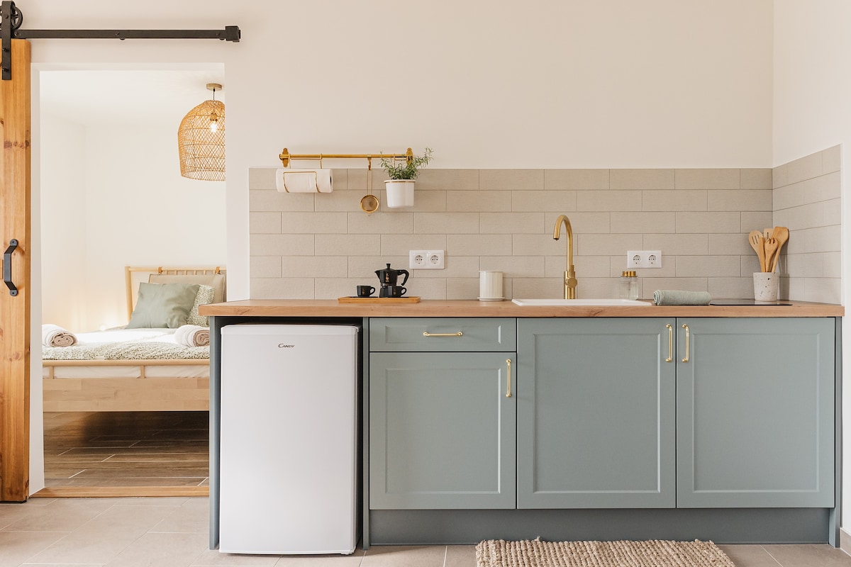 Lejos de la carretera y del ruido del mundo, en el bosque se encuentra la casa de adobe blanco de Kereseszeg. Hemos conservado los edificios antiguos: la casa y el establo han renacido como una casa de huéspedes moderna, cómoda y sencilla. Sala de estar con sofá cama, donde puede caber cómodamente 1 persona más. Rincón de lectura, cocina, mesa de comedor. Dormitorio con cama doble grande. Baño moderno. El antiguo establo se ha convertido en un apartamento con baño privado. Terraza cubierta, comedor, parrilla.
