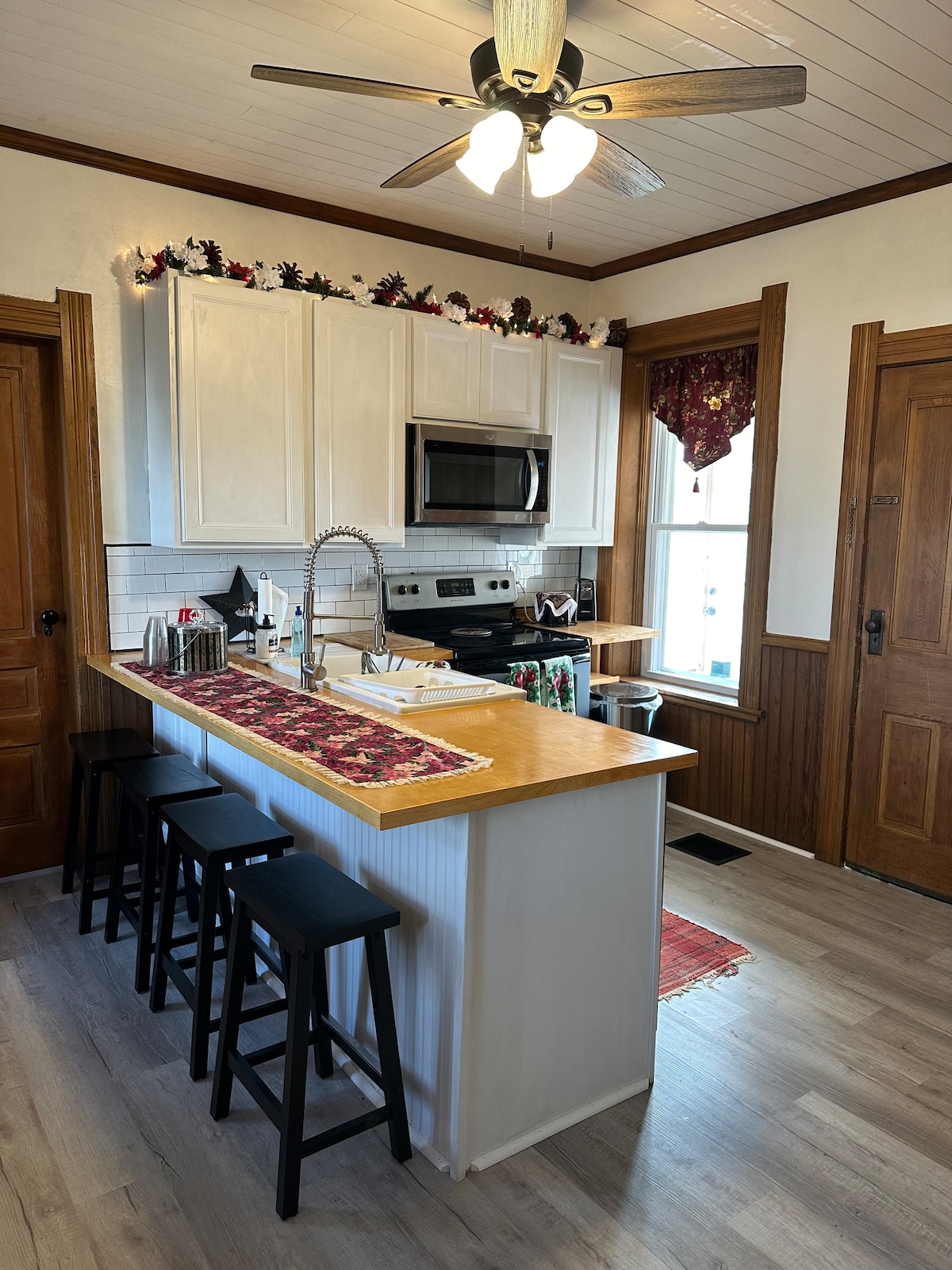 Apartamento de un dormitorio en el centro histórico de Elmore, OH, cerca de la I-80/90 (autopista de Ohio). Techos altos y ventanas grandes. Cama tamaño king premium y sofá cama tamaño queen. Baño remodelado en enero de 2025. Cocina abastecida. Lavadora/secadora. Acceso a internet. Ubicado cerca del sendero interioral de la costa norte, parques, restaurantes y bares. A 20 minutos en coche de las islas del lago Erie y del centro de Toledo.