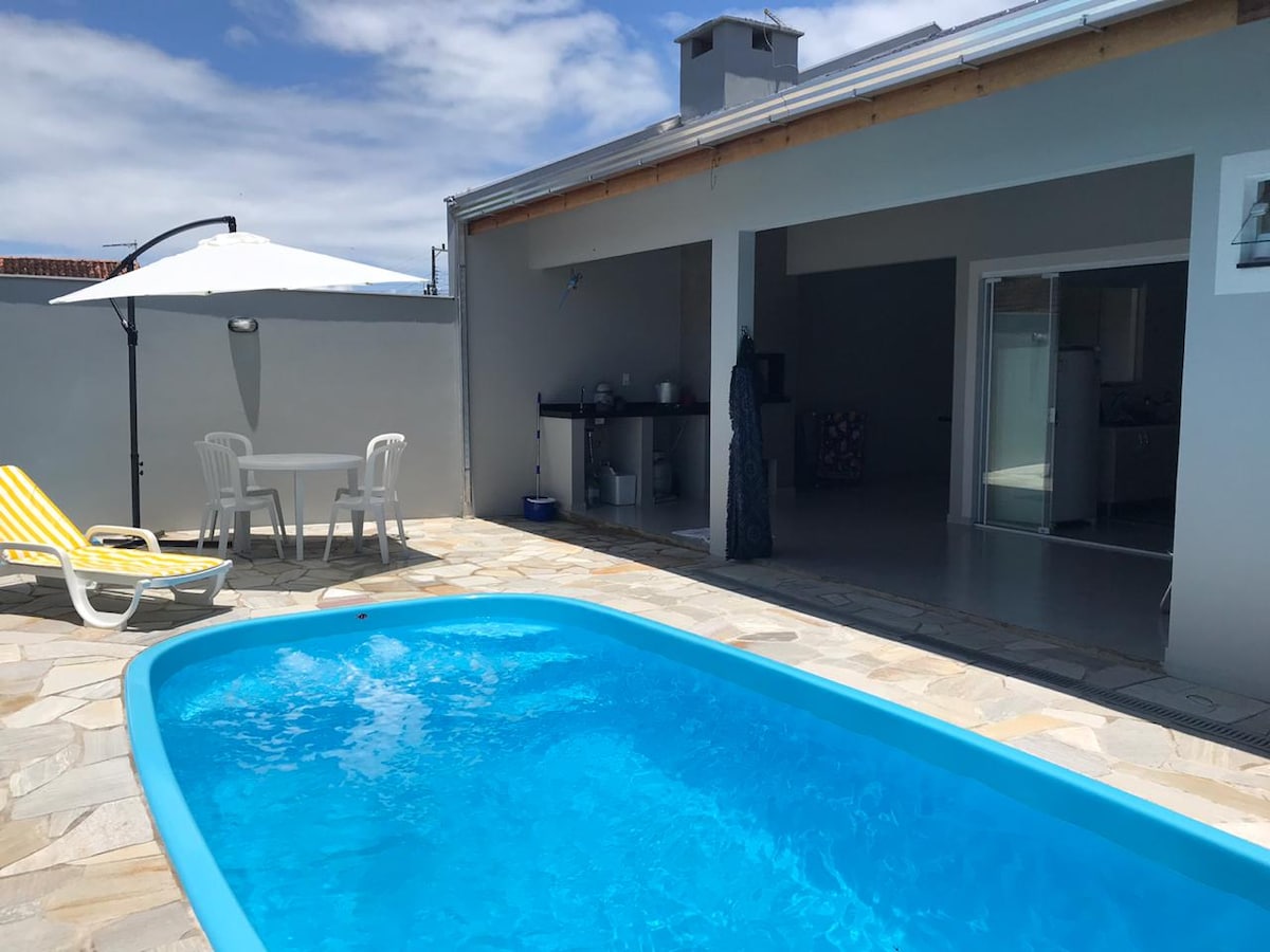 Casa de playa tradicional con piscina climatizada, muy bien equipada y cómoda, ubicada a 1 cuadra del mar en Balneário Barra do Sul. Compuesto por 3 dormitorios, 1 de ellos con baño privado, todos con aire acondicionado split nuevo. Habitación con TV inteligente de 42pulgadas y canales por cable, películas y series. Proporcionamos ropa de cama y toallas para todos los huéspedes. La zona exterior tiene un balcón con una parrilla de carbón, una mesa de comedor y 5 puntos de hamaca. En el patio hay 2 autos tranquilamente.