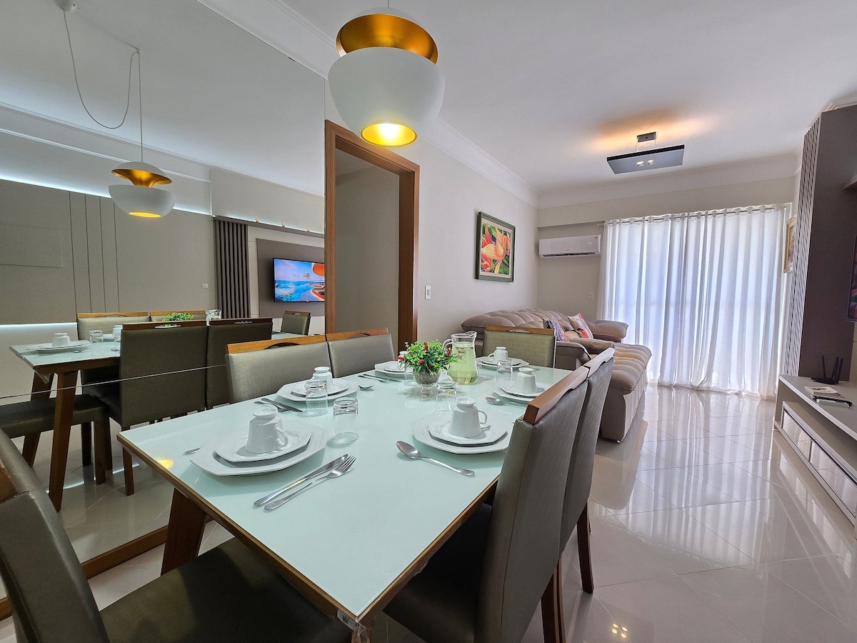 El espacio es maravilloso, la mejor ubicación en Balneário Camboriú, con una vista espectacular al mar y al lado de la noria, con 2 dormitorios, una suite con cama Queen, otro con cama doble y uno con cama individual, aire acondicionado en la sala de estar y en la suite en la otra habitación tiene ventilador, la cocina está bien equipada, con sandwichera, cafetera eléctrica, licuadora y muchos utensilios, en el balcón hay una parrilla eléctrica. NOTA: EL VOLTAJE ES 220vts EN EL EDIFICIO TIENE UN GRAN LUGAR PRIVADO