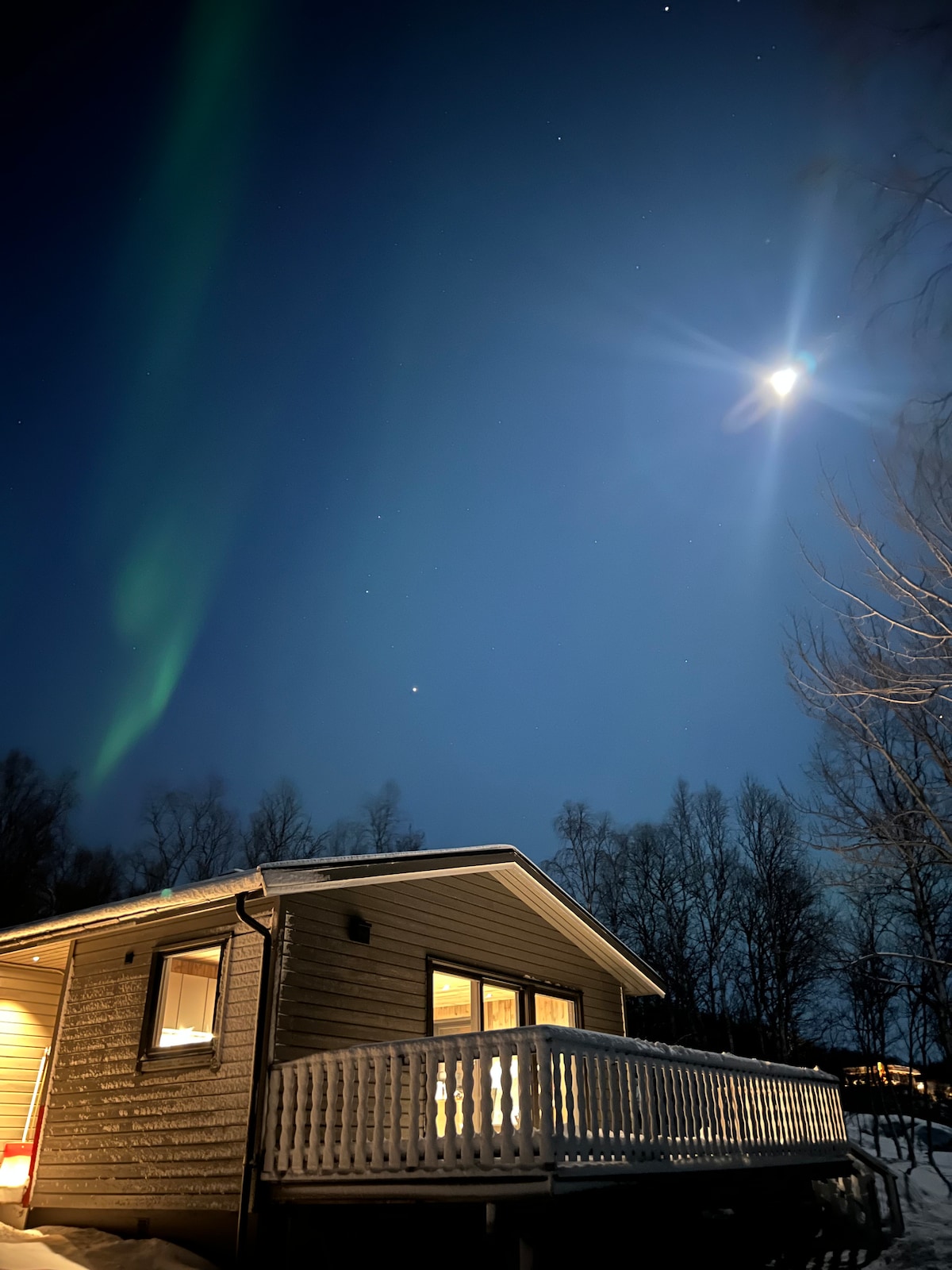 Esta pequeña casa de huéspedes tiene la vista más hermosa directamente desde la cocina y la ventana del dormitorio. Dado que no hay farolas alrededor, es el lugar perfecto para observar la Aurora y disfrutar de una escapada privada relajante en el Ártico. Vivimos al lado con nuestro hijo de 6 años y nuestro gato. Estamos en el trabajo desde las 8:00 están en casa desde aproximadamente las 4:30p. m. y los fines de semana. Servicios en las instalaciones: Carga de vehículos eléctricos 400 kr/Traslado privado 500 kr/Bañera de hidromasaje 1200 kr o 100 € por 2 días/Sauna 500 kr o 40 EUR por uso (solo efectivo)