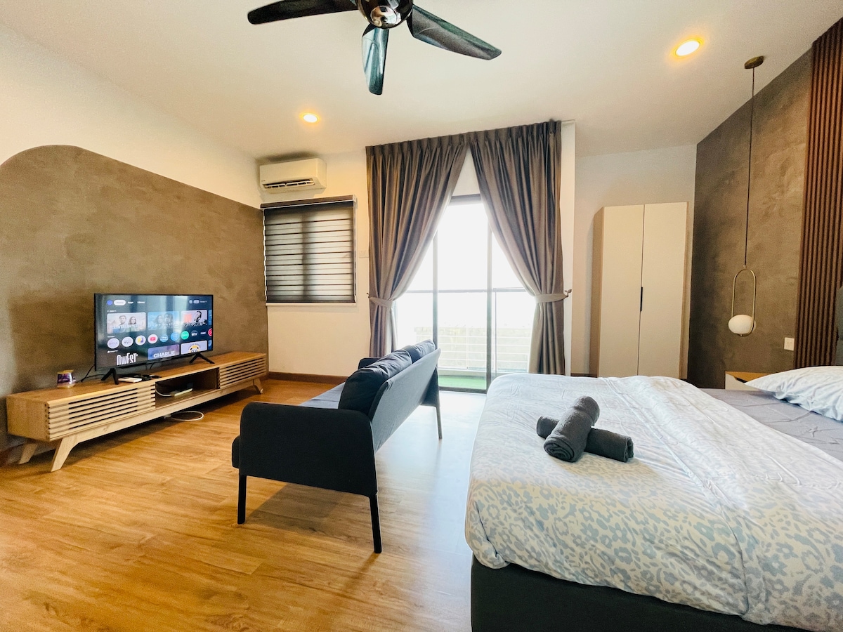 Relájate en esta suite estudio tranquila, acogedora, limpia y totalmente amueblada. Es el alojamiento perfecto para viajeros solitarios o de negocios, parejas o amigos que viajan juntos. Este estudio está en la unidad de esquina del piso alto donde puedes tener una buena vista pananómica de Cheras, Kajang y Kuala Lumpur. Se encuentra junto a SILK Highway y Kajang-Cheras Highway, que están bien conectadas con Kajang, Cheras y Kuala Lumpur. Fácil acceso al transporte público, como la estación de autobuses y el MRT más cercano, es la estación Batu 11 MRT.