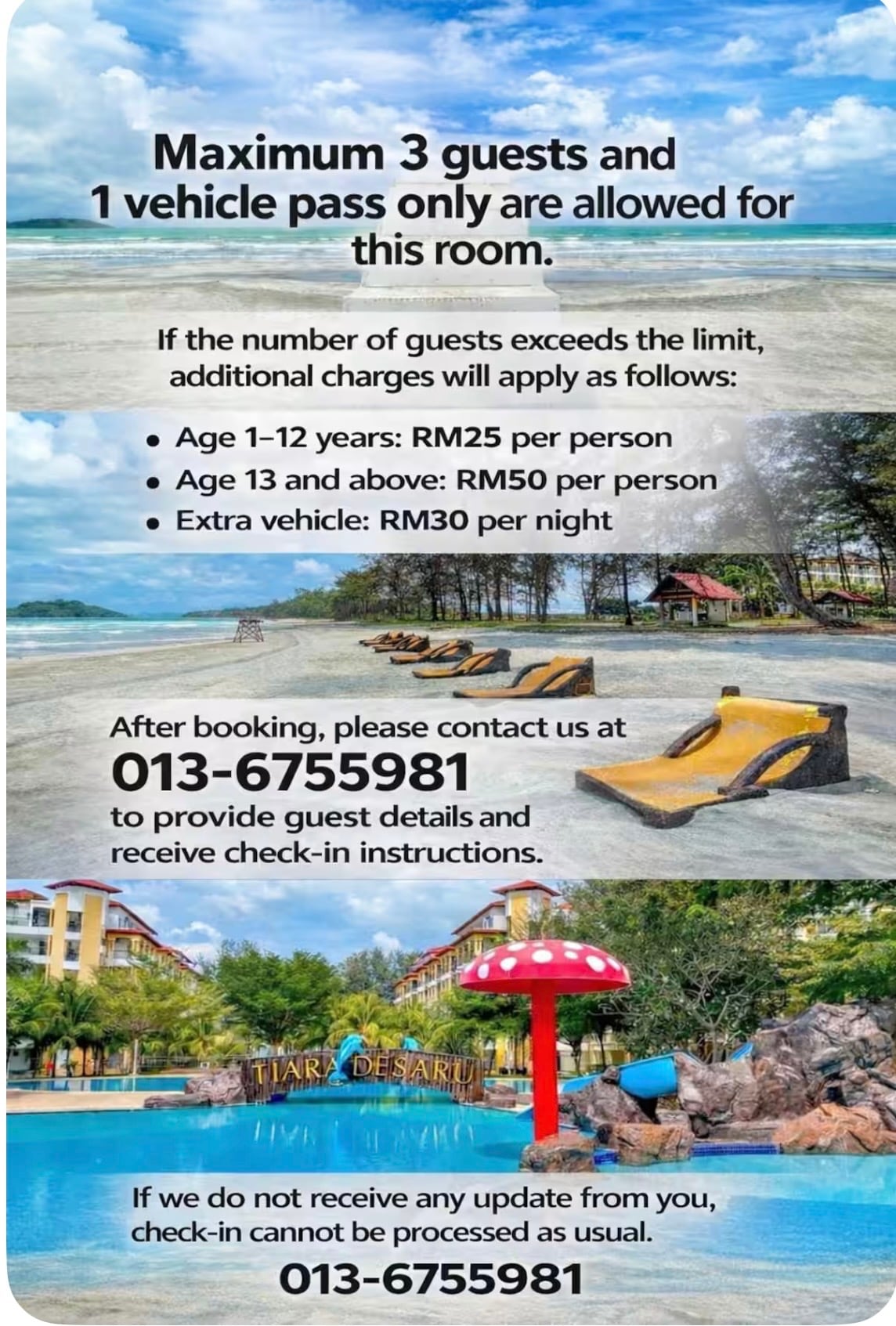 Desaru Tiara Waterpark Beach Resort 3-5PAX
