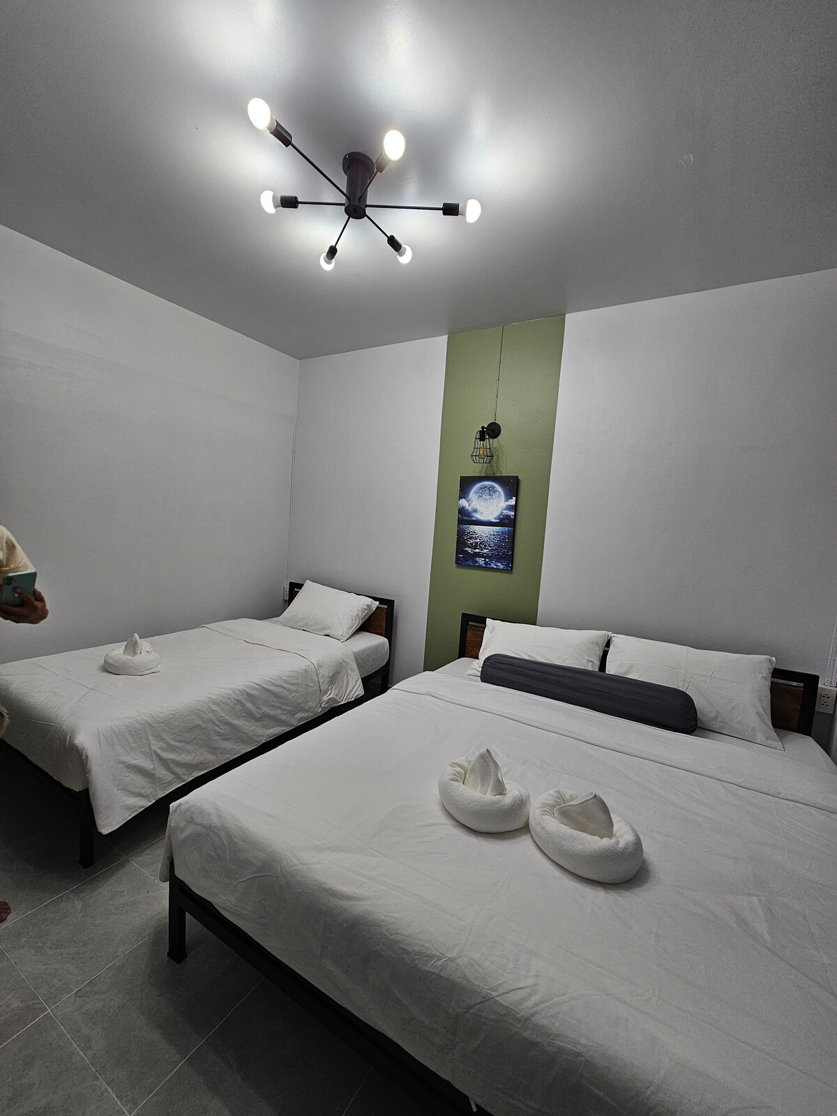 Siéntete como en casa es la mejor casa de huéspedes de la ciudad de Betong. Tenemos 2 habitaciones en la casa de huéspedes. Cada habitación tiene 1 cama tamaño queen con cama corrediza de 3,5 pies para una familia de cuatro personas seis. Cada habitación tiene aire acondicionado. Nuestra cocina tiene microondas, olla caliente, nevera y café gratis, milo. La sala de estar tiene TV inteligente, sofá, mesa de comedor para unir tu tiempo, aparcamiento privado gratuito en la casa de huéspedes.