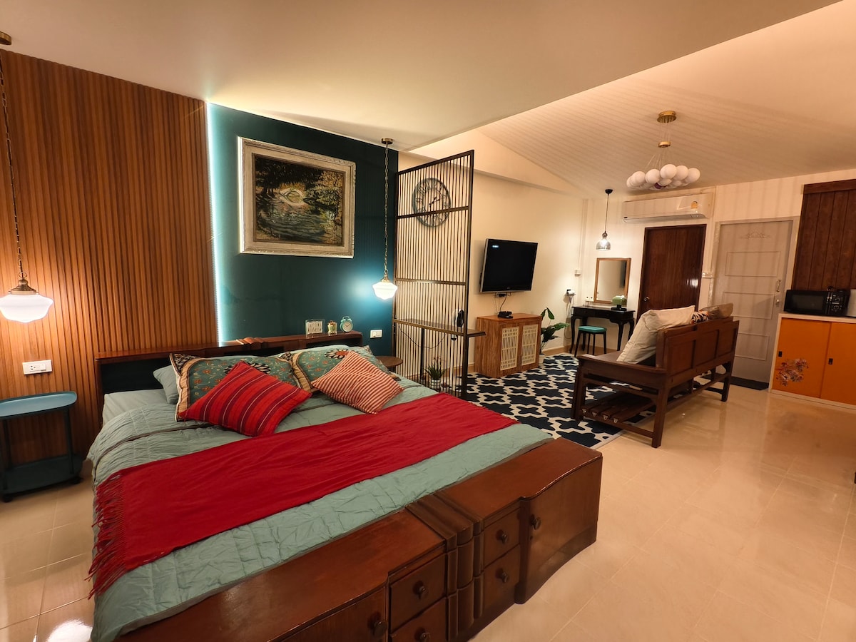 Perfectamente ubicado a solo 1 minuto del centro comercial y a solo 3 minutos a pie del Skytrain, este elegante apartamento recientemente renovado es ideal para estancias cortas y largas. El espacio ofrece WiFi rápido, una cocina totalmente equipada, balcón privado, agua potable ilimitada de un purificador de agua y servicio de limpieza semanal. Con capacidad para 3 huéspedes, está diseñado para ofrecer comodidad, confort y una estadía sin preocupaciones. Para estancias prolongadas, nos complace ofrecer un 30 % de descuento.