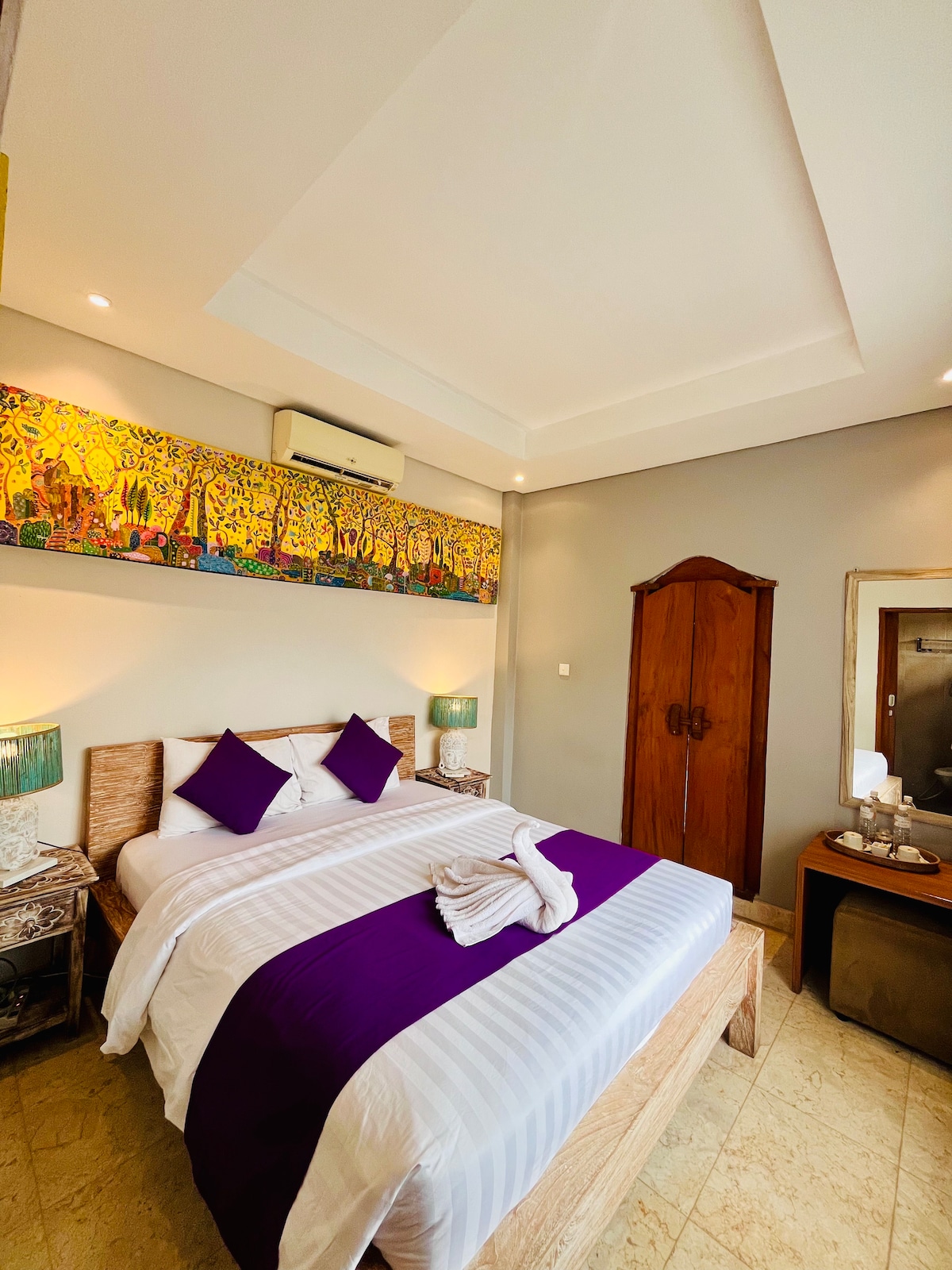 Esta propiedad de lujo se encuentra en el norte de Ubud, a 10 minutos del centro de Ubud, a 15 minutos de Ubud cretya con boutiques,yoga, cafés, restaurantes, estudios de yoga y muchas atracciones locales vibrantes. El desayuno gratuito es solo 1 vez durante la estancia, mínimo 2 días masainap, pero puedes utilizar nuestra cocina totalmente equipada y preparar tu propia cocina. que Ubud puede ofrecer como un restaurante de clase mundial y una cultura más grande puede ofrecerte la mejor estancia en Bali.