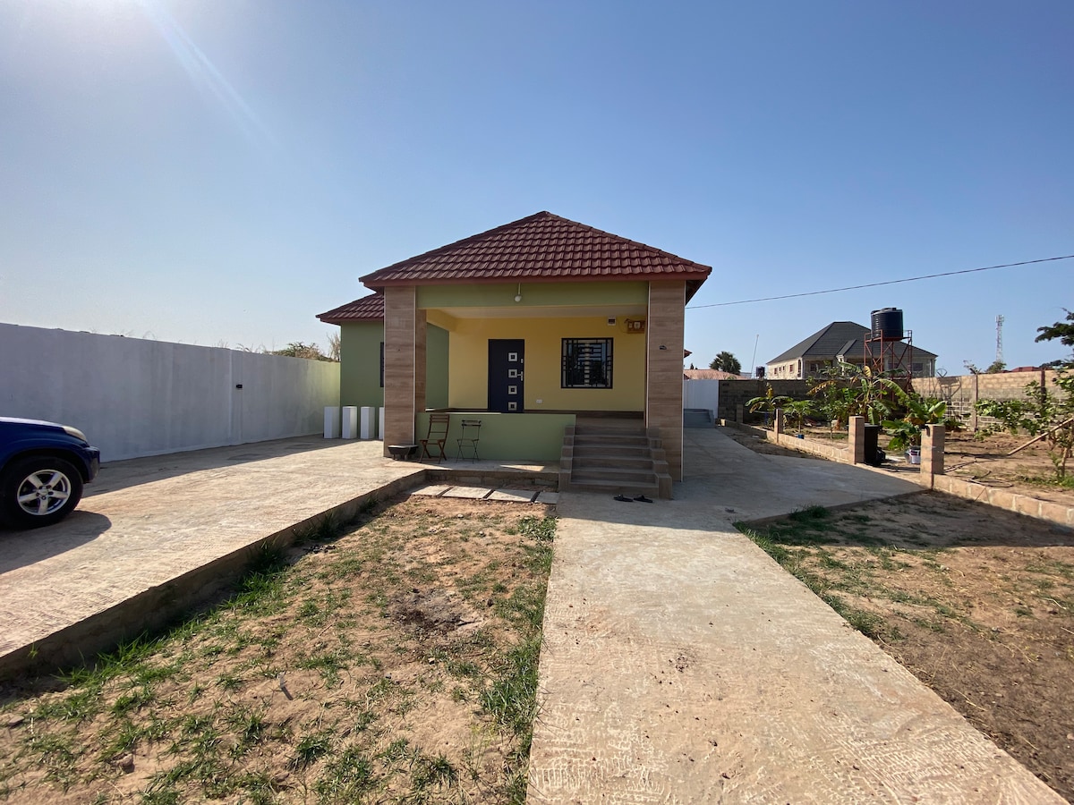 Escape to your own peaceful haven in the vibrant heart of Kerr Serign. This modern one-bedroom house blends comfort with authentic Gambian living. This home offers the perfect balance of relaxation and convenience. Wifi and AC available. Security officer on site. Short drive (approx. 5 minutes) to the Senegambia Strip for restaurants, nightlife, and beaches. · Private entrance · Double bed · Full fitted kitchen · Towels · Free parking on premises · WiFi