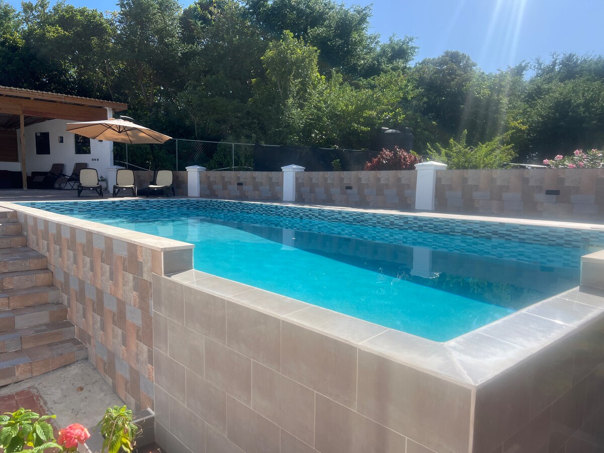 Nuestra propiedad de nueva construcción se encuentra muy por encima de las copas de los árboles en un pintoresco pueblo entre los lugareños. Este concepto abierto de 2 dormitorios y 2 baños ofrece acceso inmediato a una piscina, balcones para disfrutar de la fresca brisa marina y una terraza en la azotea con asientos al aire libre, chimenea y TV con vistas al exuberante follaje tropical hasta el océano. Estamos ubicados a solo 10 minutos del Aeropuerto Internacional de Hewanorra (UVF) y a poca distancia en coche de playas, restaurantes y las principales atracciones de la parte sur de Santa Lucía.