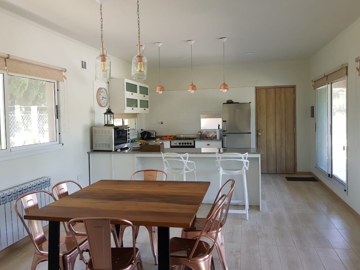 "El Rancho" es nuestra casa , donde vivimos todo el año. Un lugar donde abunda la naturaleza y la tranquilidad del campo pero a la vez muy cerca del pueblo. No es solo el alojamiento , sino también convivir con nuestros perros ( Chicha & Chiflete ) y caballos que son parte del lugar. La construcción es nueva pero somos amantes de las antigüedades y cada detalle de la casa tiene una historia para contar .