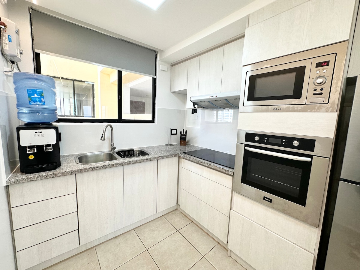 Moderno apartamento con vistas al mar, a pocos pasos de la playa El Murciélago (sede del Ironman 70.3), el centro comercial Mall del Pacífico y los mejores restaurantes locales. Perfecto para vacaciones/trabajo a distancia con un monitor proporcionado. Tranquilo, lejos del ruido de la calle. Seguridad las 24 horas, los 7 días de la semana e internet de fibra óptica de alta velocidad. Los servicios incluyen piscina, sauna y jacuzzi (abierto de martes a domingo, puede cambiar sin previo aviso). El edificio cuenta con un generador para las zonas comunes y un SAI mantiene el wifi en funcionamiento. El ascensor, el agua y el internet funcionan durante los cortes.