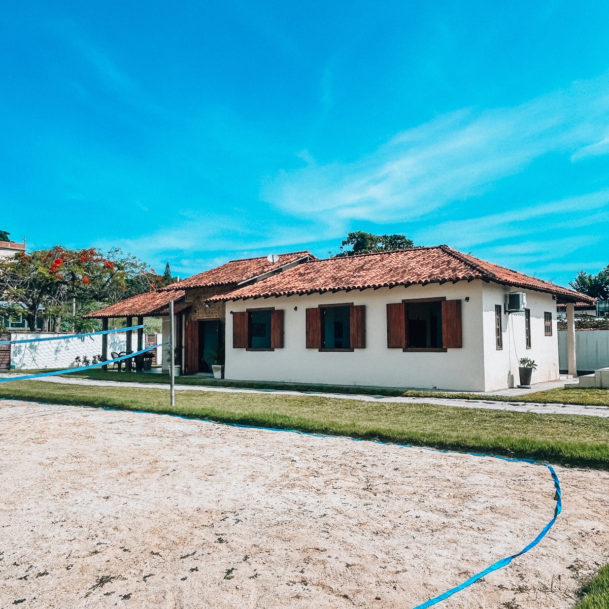 Una casa blanca con balcón, un patio y una ventana para ver salir el sol. ¿O sería un pueblo allí, donde sopla un buen viento? Sea cual sea la música, si depende de la casa y el jardín, ¡el viaje será vigorizante! Junto al Club Náutico, el carril bici, la escuela de Kitesurf. Restaurantes y bares cerca. Fácil acceso a la plaza de la ciudad. Barrio tranquilo y residencial. A 200 metros de la calle principal. A 40 km de Cabo Frio, a 50 km de Arraial do Cabo y a 61 km de Búzios. Praia Seca (19 km) y Saquarema (22 km).