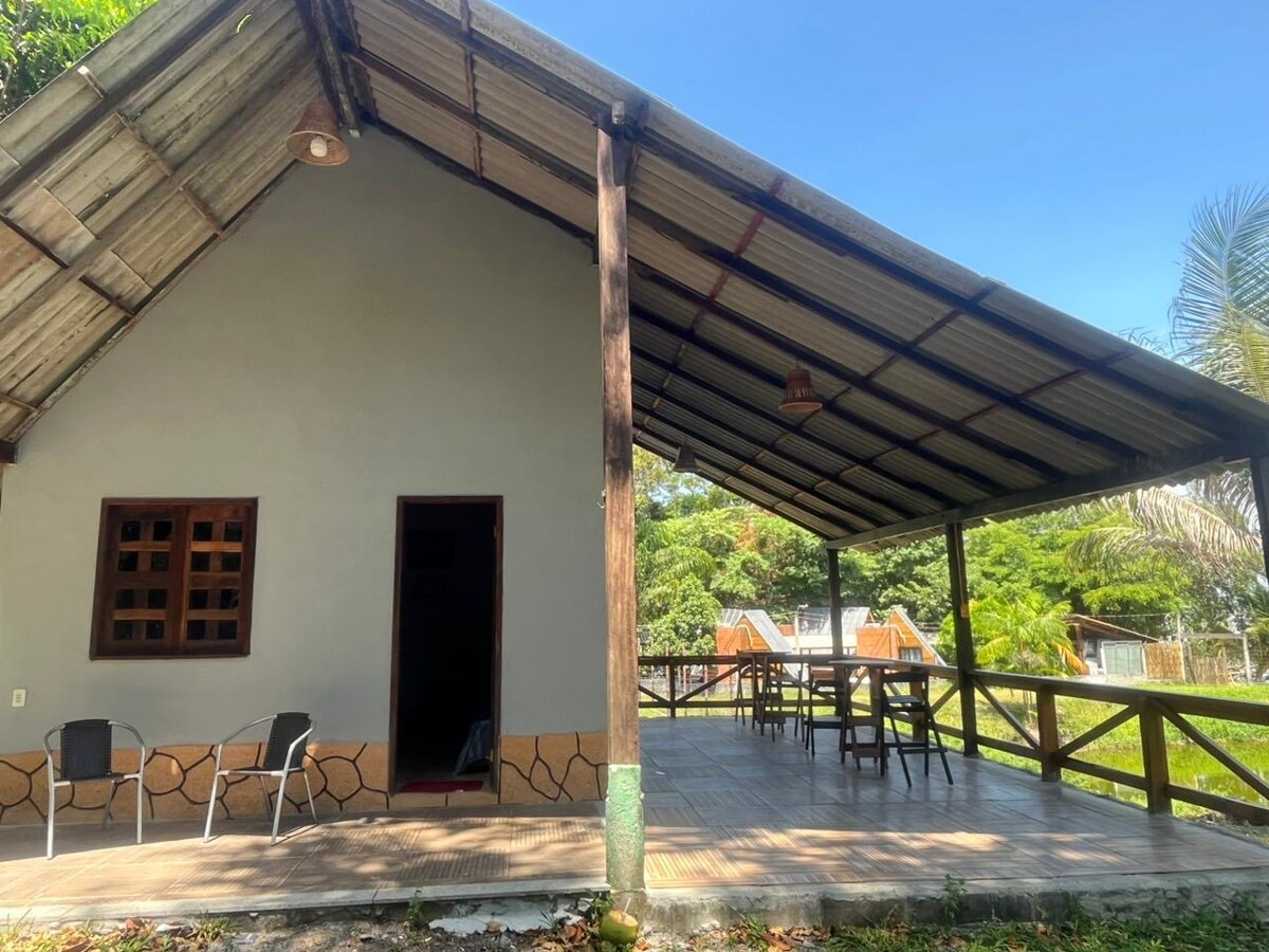 Disfruta de la comodidad exclusiva de esta cabaña en la isla Combu, rodeada de naturaleza y con vistas al horizonte de Belém. Alojamiento seguro para familias con cama doble y colchón Emma, sofá cama, baño interior limpio, cocina completa, nevera y aire acondicionado potente. En el río, internet Wi-Fi y smart TV con proyector para momentos de relax. Un refugio perfecto que combina comodidad y tranquilidad en medio de la naturaleza amazónica. Fácil acceso. ¡¡¡¡VIVE ESTA EXPERIENCIA!!!!
